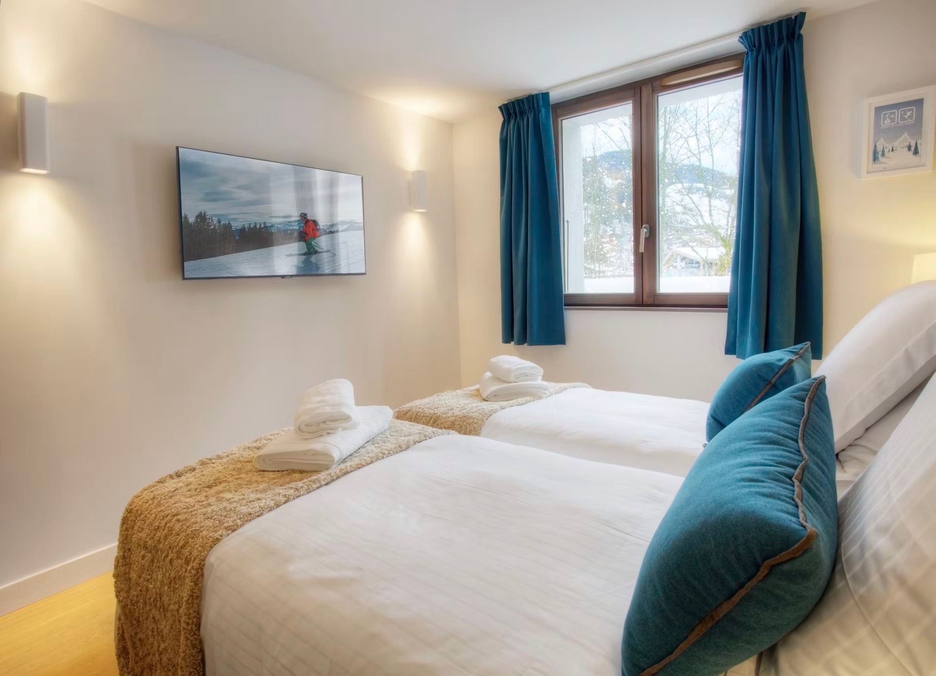 Framed with woodland, this contemporary chalet feels totally secluded. The truth is, you’re just 200 metres from the centre of La Clusaz. Modern and chic, you may find it hard to tear yourself away from this home, and the sauna and hot tub will warm you up after a day on the slopes. Just be prepared that the driveway is a little tricky in heavy snowfall, so you may prefer to leave the car in the village and walk home. The ski bus stops on your doorstep so the slopes of La Clusaz are ready when you are. Non-skier? Hit the ice rink, heated outdoor village pool or bars instead.