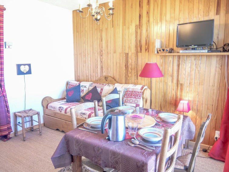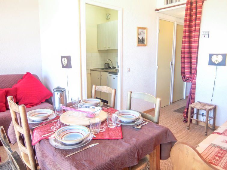 In terms of surface area, the apartment is not particularly large. The furnishings are very complete by French standards. There is no boiler but unlimited hot water. Own parking space behind a barrier and a decent ski locker. Slope 50 meters away.