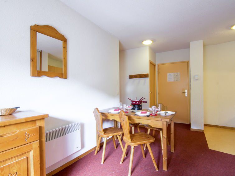 "Bâtiment A", 2-room apartment 32 m2 on 1st floor, south facing position. Simple furnishings: living/dining room with 1 pull-out bed (2 pers. 2 x 80 cm, length 190 cm), TV (flat screen). Exit to the balcony, south facing position. 1 room, south facing position with 2 beds (90 cm, length 190 cm).