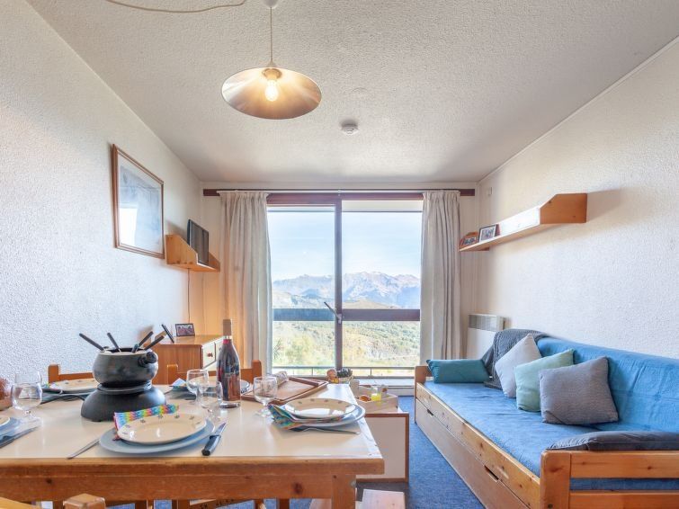 2-room apartment 32 m2 on 5th floor, north-west facing position. Simple furnishings: living/dining room with 1 pull-out bed (2 pers. 2 x 80 cm, length 190 cm), TV (flat screen). Exit to the balcony, north facing position. 1 room with 1 x 2 bunk beds (90 cm, length 190 cm). Exit to the balcony, west facing position.