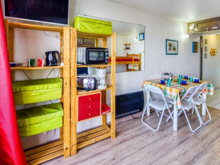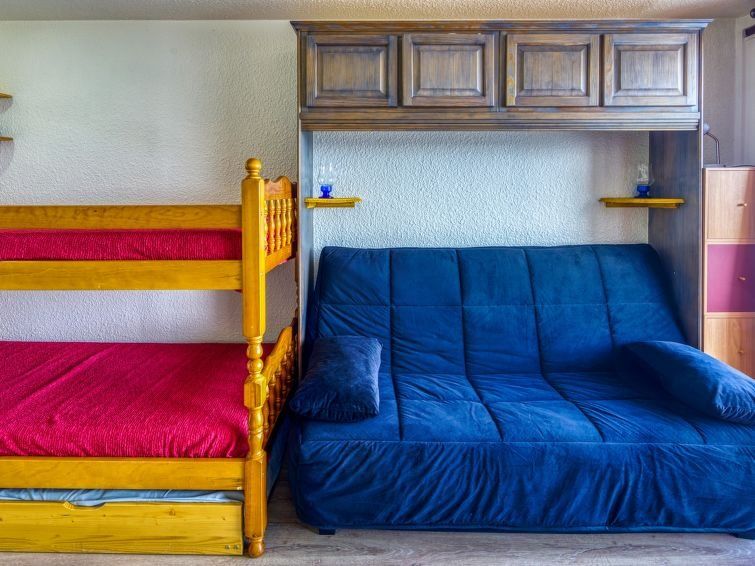 1-room studio 22 m2 on 7th floor, north facing position. Simple and beautiful furnishings: living/dining room with 1 double sofabed (130 cm, length 190 cm), 1 x 2 bunk beds (90 cm, length 190 cm), TV (flat screen). Exit to the balcony, north facing position. Kitchenette in the entrance (2 hot plates, mini-oven, toaster, kettle, microwave, electric coffee machine).