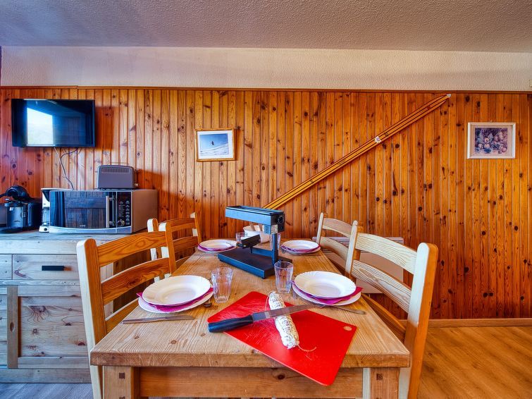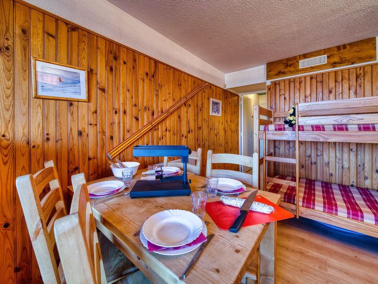 1-room studio 22 m2 on 4th floor, north facing position. Beautiful furnishings: living/dining room with 1 double sofabed (140 cm, length 190 cm), 1 x 2 bunk beds (90 cm, length 190 cm), TV (flat screen), electric shutters. Exit to the balcony. Kitchenette in the entrance (2 hot plates, toaster, kettle, electric coffee machine, Capsules for coffee machine (TASSIMO) extra, raclette grill, combination microwave).