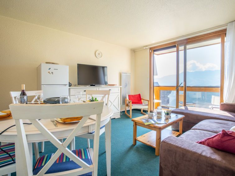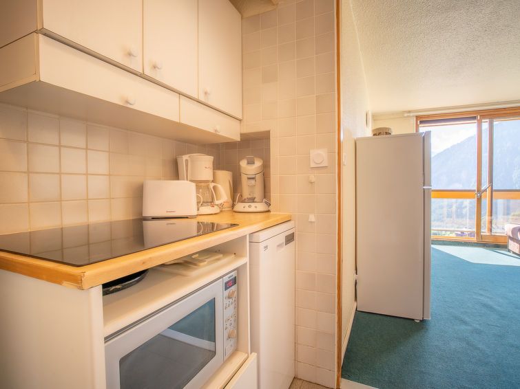 Right next to the slopes, and services (restaurant, grocery store, daycare...). Very bright and pleasant apartment to stay. Lack in the housing (pot and stove). We had a wonderful stay.