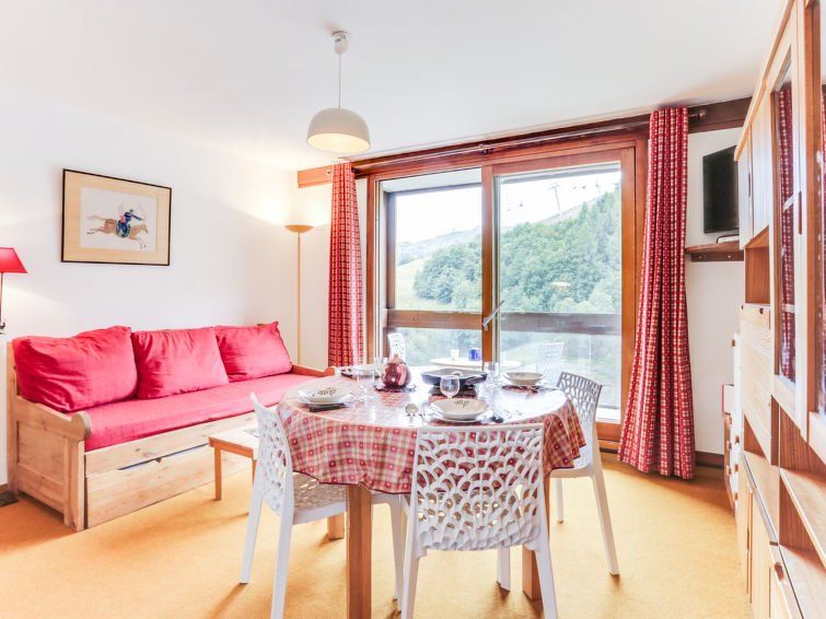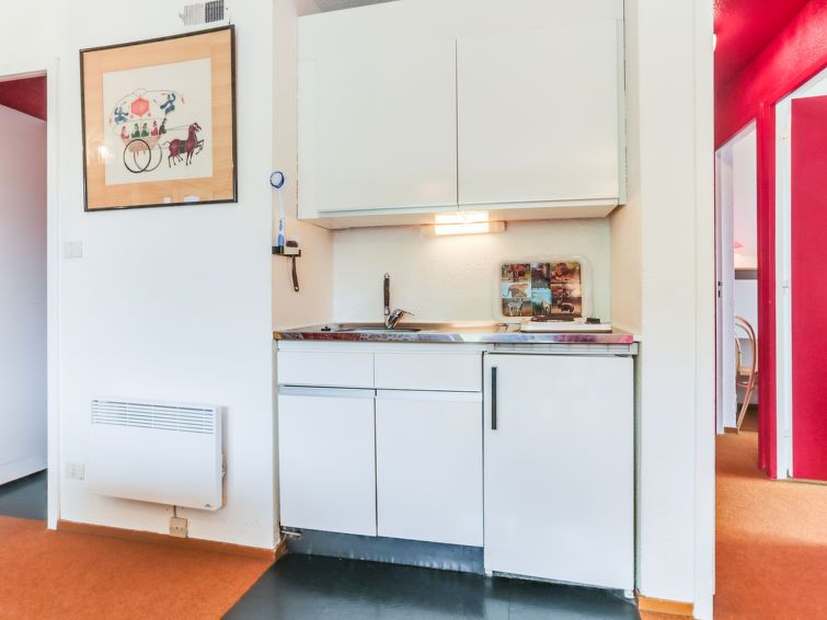 3-room apartment 40 m2 on 10th floor, south-east facing position. Beautiful furnishings: living/dining room with 1 pull-out bed (2 pers. 2 x 80 cm, length 190 cm), TV (flat screen), DVD. Exit to the balcony, south facing position. 1 room with 1 french bed (140 cm, length 190 cm). Exit to the balcony, east facing position.