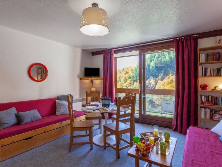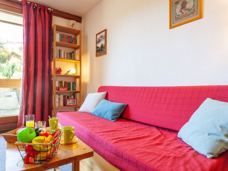 1-room studio 32 m2 on 11st floor, south facing position. Simple furnishings: living/dining room with 2 beds (80 cm, length 190 cm), TV (flat screen). Exit to the balcony, south facing position. Alcove with curtain, without window with 1 x 2 bunk beds (80 cm, length 190 cm). Kitchenette (2 hot plates, oven, toaster, microwave, electric coffee machine).