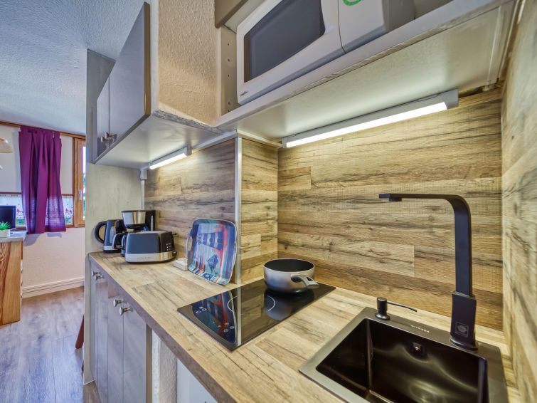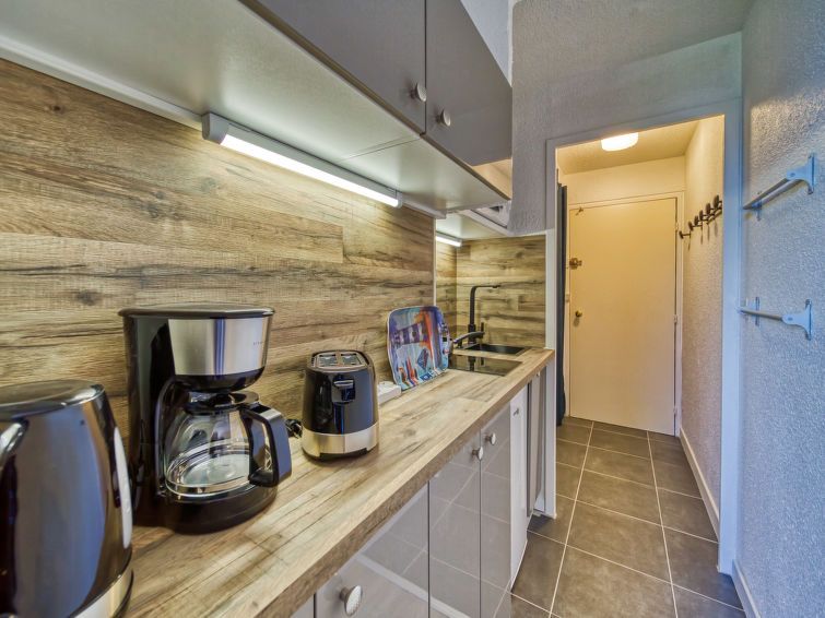 1-room studio 16 m2 on 3rd floor. Renovated in 2023, beautiful furnishings: living/sleeping room with 1 double sofabed (140 cm, length 190 cm), TV (flat screen), hi-fi system. Kitchenette in the entrance (2 induction hot plates, toaster, kettle, microwave, electric coffee machine).