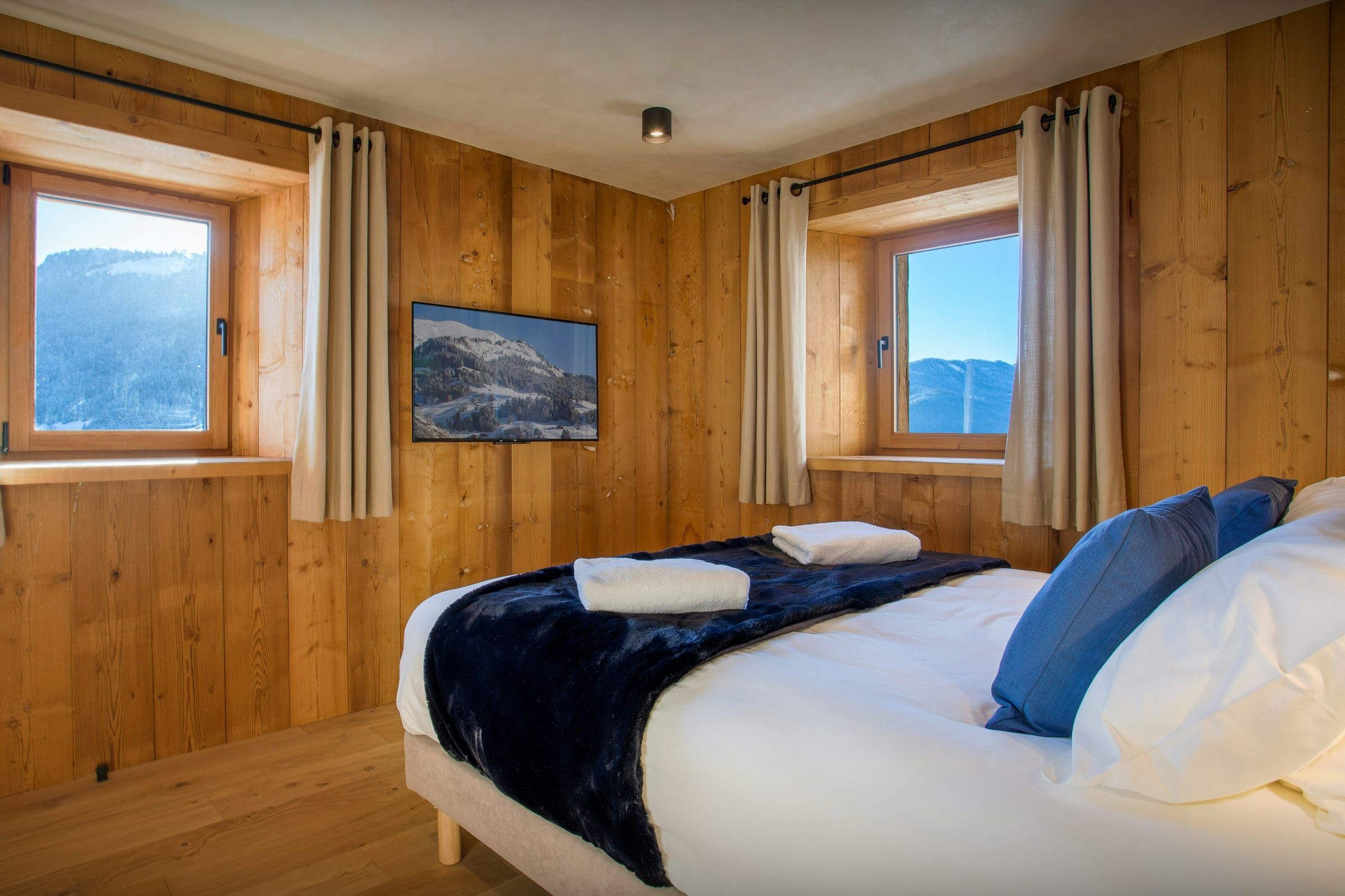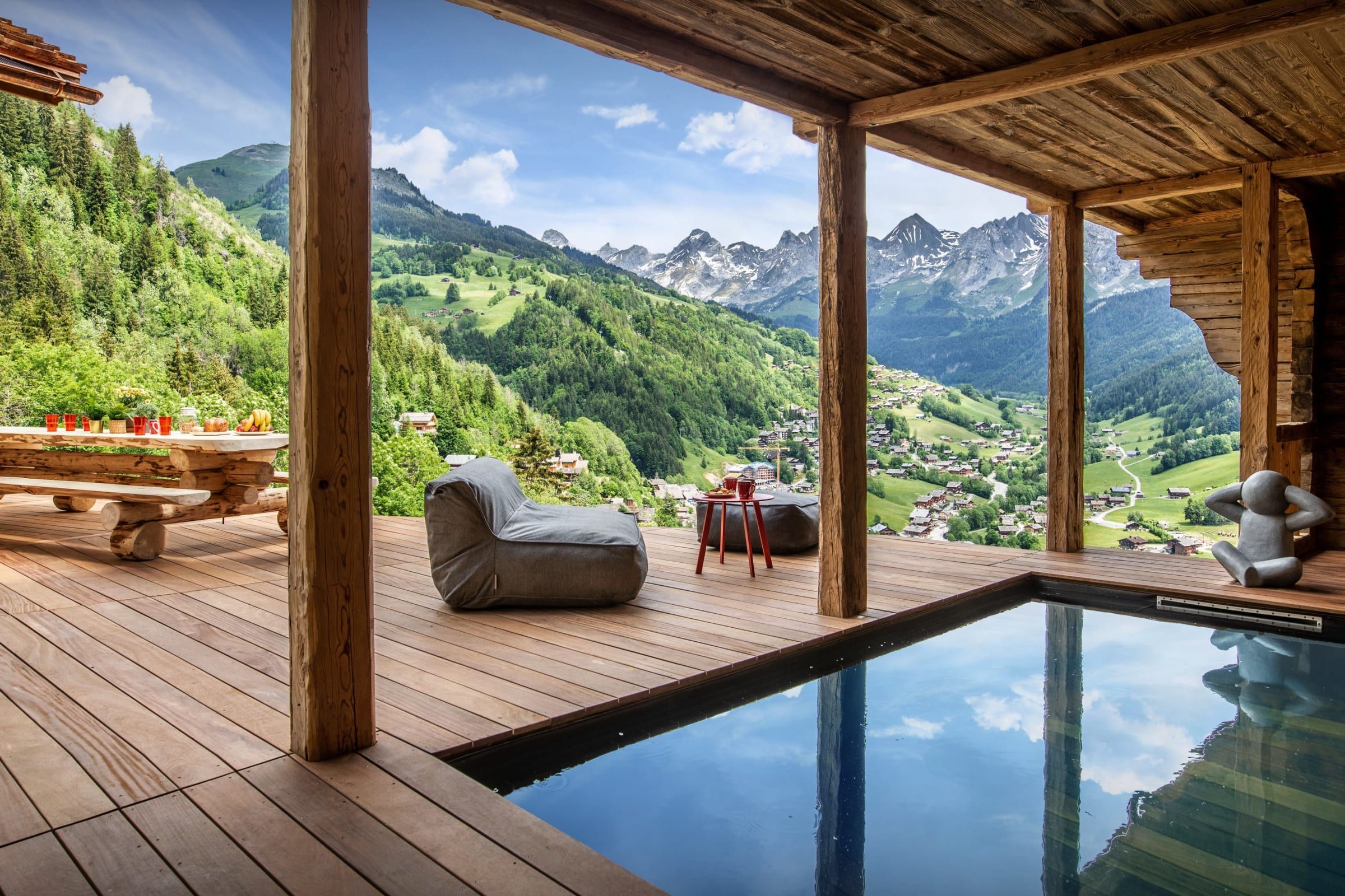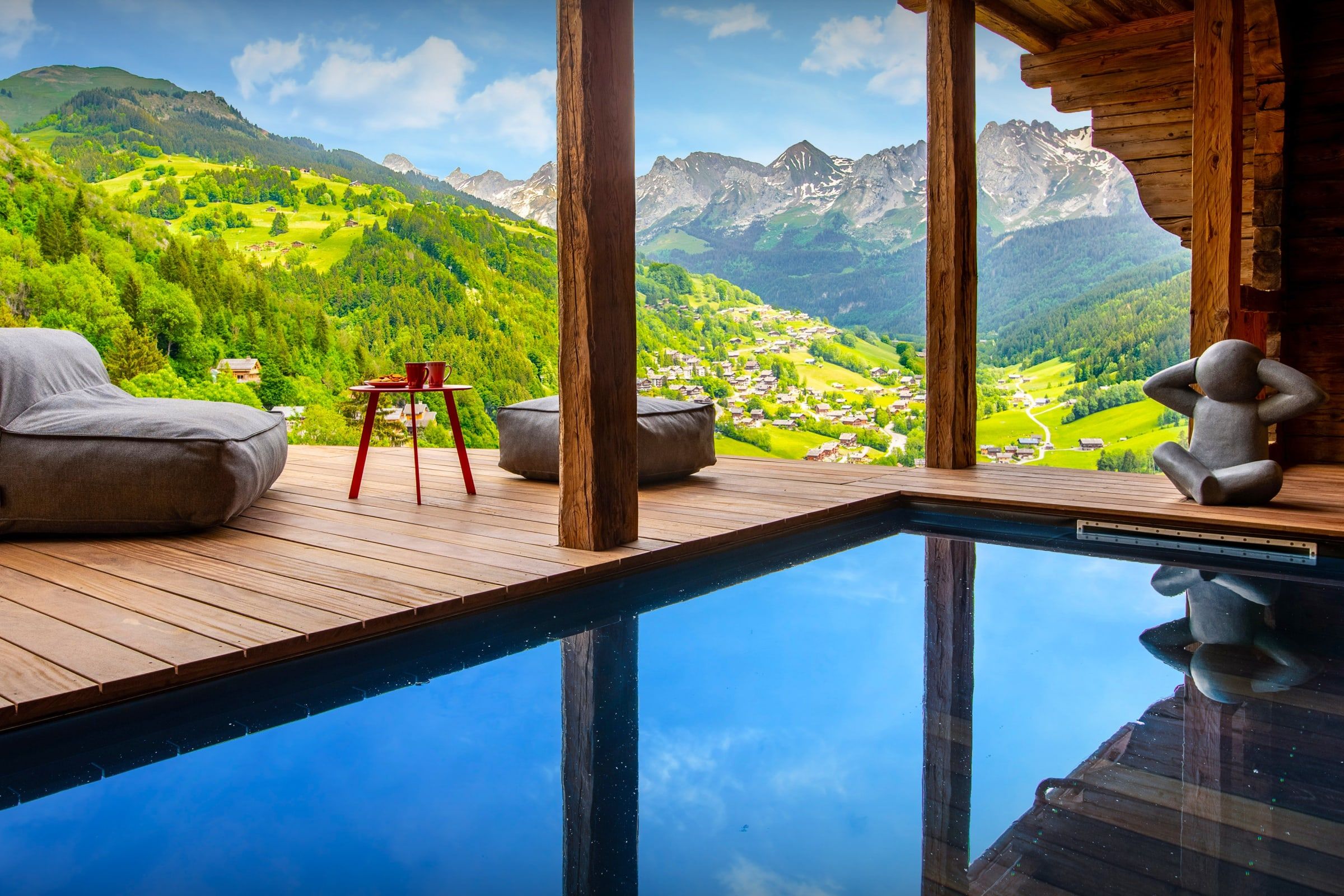 The views from this chalet will make you smile from the moment of arrival. You’ll also be welcomed by a swimming pool, a sauna and a terrace where you can sit back and savour this majestic location. Inside, the rooms are just as enticing with highlights including the wood-burning fire, a home cinema, a gym and snug bedrooms (all of which come with ensuite bathrooms). Adventure lovers will find perfect contentment in this location with easy access hiking trails and the nearby pistes – just a short drive or bus ride away.
