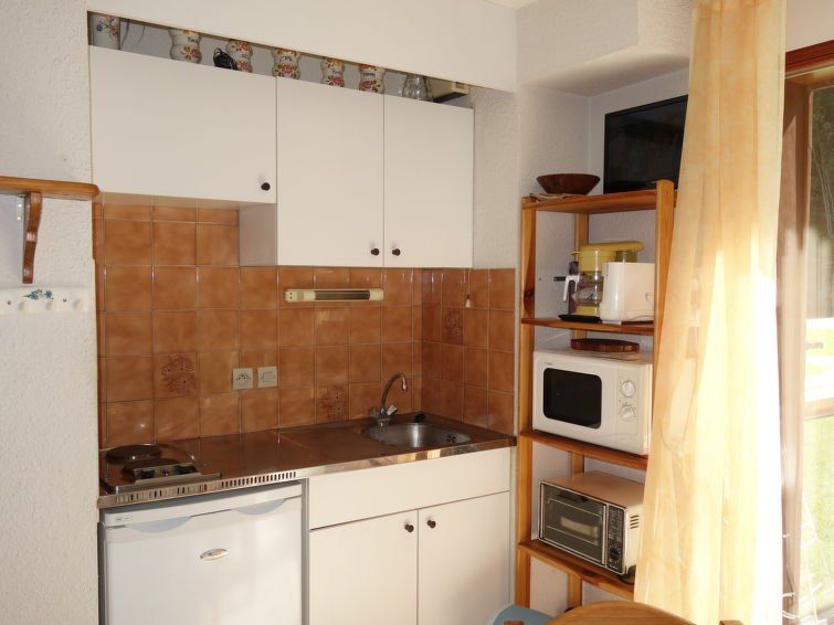 1-room apartment 20 m2 on 1st floor. Living/dining room with 1 double sofabed and 1 x 2 bunk beds (80 cm, length 190 cm), TV. Exit to the balcony. Kitchenette (2 hot plates, oven, toaster, kettle, microwave, electric coffee machine). Bathroom, sep. WC. Electric heating. Small balcony 3 m2, west facing position.