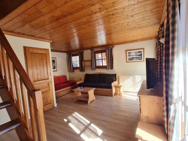 "Alpina Lodge", 3-room apartment 65 m2 on 1st floor. Object suitable for 8 adults. 1 room with 1 double bed and TV. 1 room with 2 beds. Living room with 2 sofabeds and 1 x 2 bunk beds. Kitchen (4 hot plates, oven, dishwasher, kettle, microwave, electric coffee machine). Bath/WC, shower/WC.