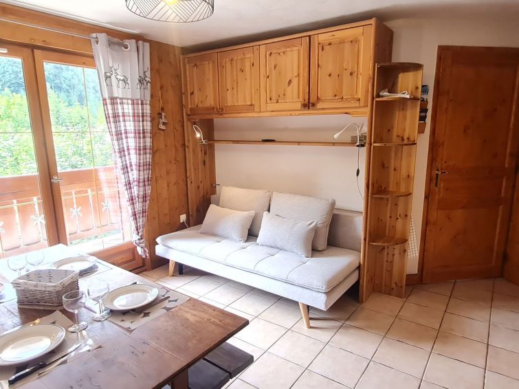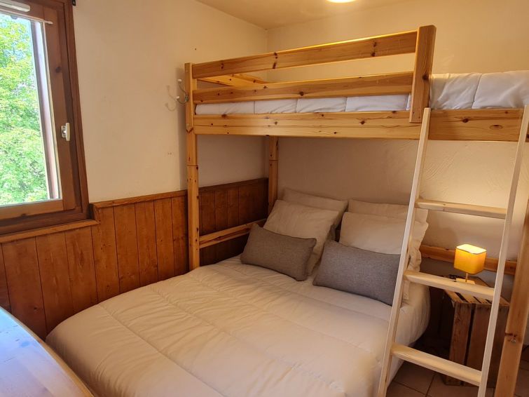 "Chalets d'Or A", 3-room apartment 32 m2 on 2nd floor. Object suitable for 6 adults. Living room with 1 sofabed, 1 pull-out bed and TV. 1 room with 1 bed and 1 double bed. 1 room with 1 double bed. Open kitchen (4 hot plates, dishwasher, toaster, kettle, microwave, electric coffee machine).