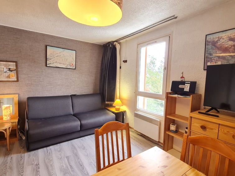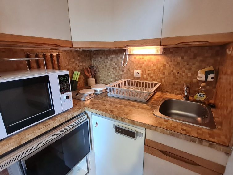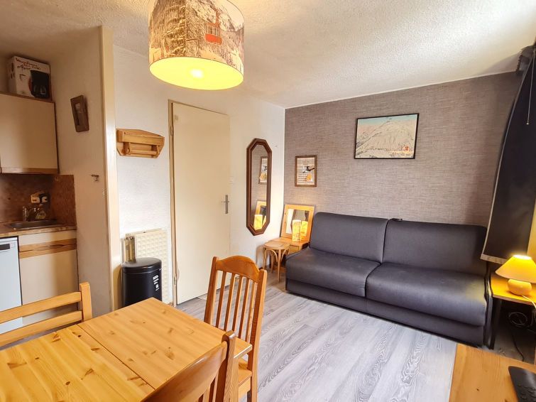 "Champamé", 1-room studio 23 m2 on 4th floor. Object suitable for 4 adults. Living room with 1 sofabed and 1 x 2 bunk beds, 1 pull-out bed and TV. Kitchen (2 hot plates, oven, toaster, kettle, microwave, electric coffee machine). Shower/WC. Please note: non-smokers only. Smoke alarm.