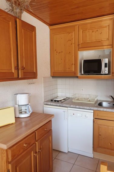 "Coolidge", 1-room studio 25 m2 on 1st floor. Object suitable for 4 adults. Living room with 1 sofabed and 1 x 2 bunk beds, 1 pull-out bed and TV. Kitchen (2 hot plates, dishwasher, kettle, microwave, electric coffee machine). Bath/WC. Balcony. View of the mountains. Please note: non-smokers only.