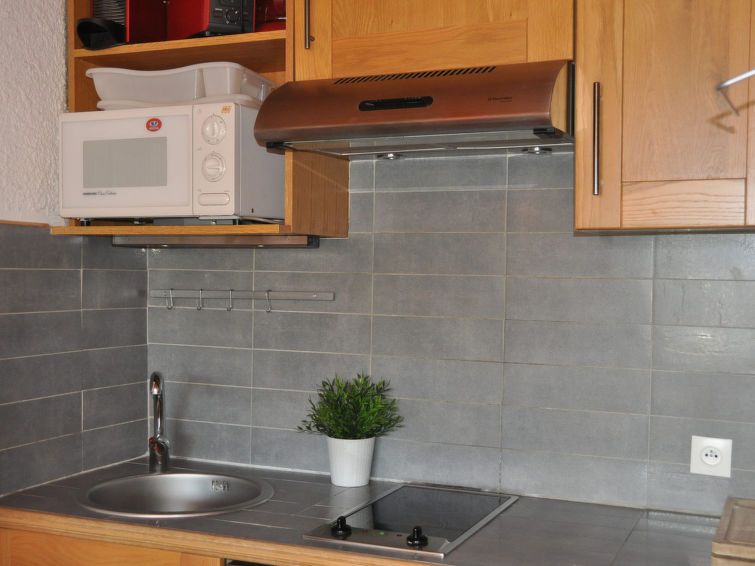 "Eperon 2", 1-room studio 32 m2 on 3rd floor. Object suitable for 4 adults. Living room with 1 sofabed and 1 x 2 bunk beds, 1 pull-out bed and TV. Kitchen (2 hot plates, oven, dishwasher, microwave, electric coffee machine). Bath/WC. Balcony. View of the mountains. Please note: non-smokers only.