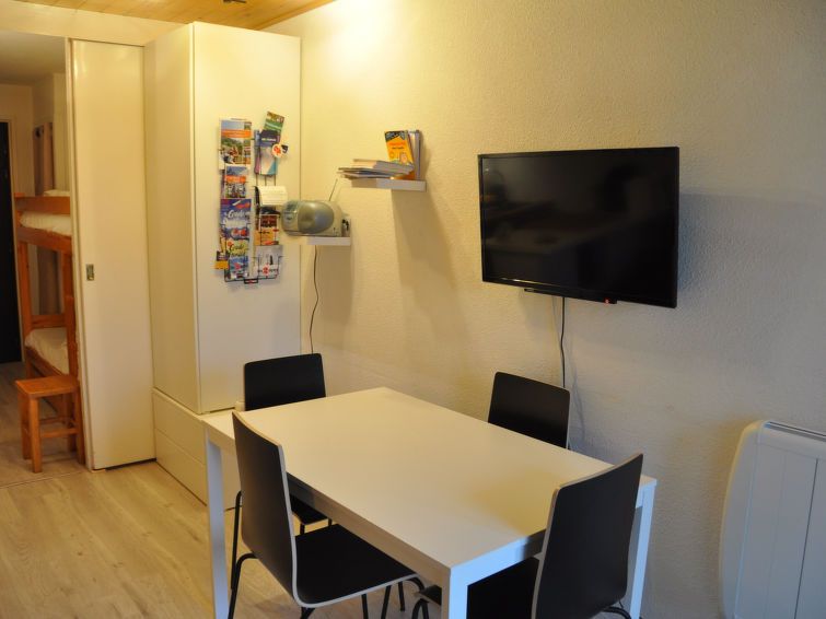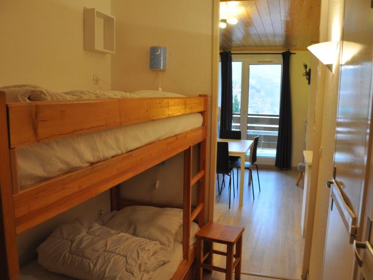 "Meije 7", 1-room studio 23 m2 on 1st floor. Object suitable for 4 adults. Living room with 1 sofabed and 2 x 2 bunk beds, 1 pull-out bed and TV. Kitchen (2 hot plates, toaster, microwave, electric coffee machine). Shower/WC. Balcony. View of the mountains. Please note: non-smokers only.