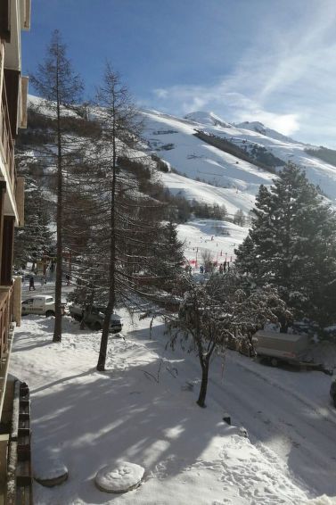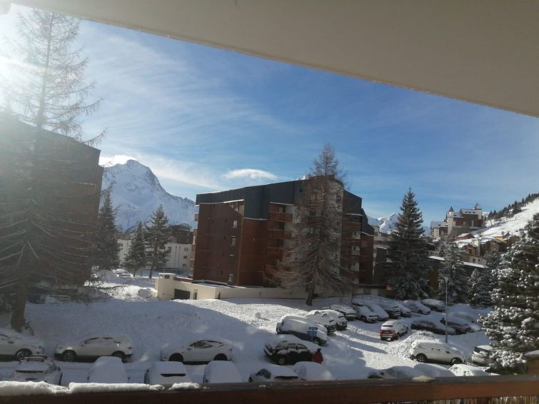 "Meijotel A", 1-room studio 35 m2 on 2nd floor. Object suitable for 4 adults. Living room with 1 sofabed, 1 double bed, 1 pull-out bed and TV. Kitchen (2 hot plates, oven, toaster, kettle, microwave, freezer, electric coffee machine). Bath/WC. Balcony. View of the mountains and the ski run.