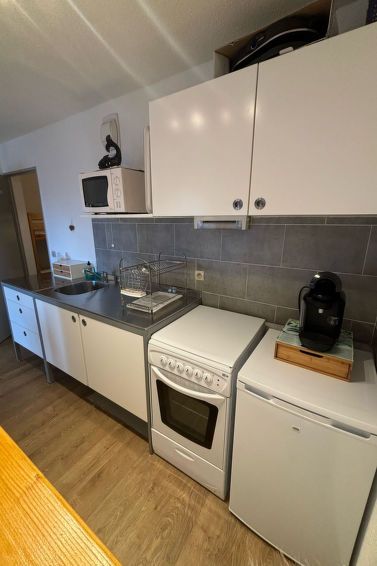"Pleiades", 1-room studio 28 m2. Object suitable for 4 adults. Living room with 1 sofabed and 1 x 2 bunk beds, 1 pull-out bed and TV. Open kitchen (2 hot plates, microwave, freezer, electric coffee machine). Shower/WC. Parking (roofed, 1 car) at the house. Please note: smoke alarm.