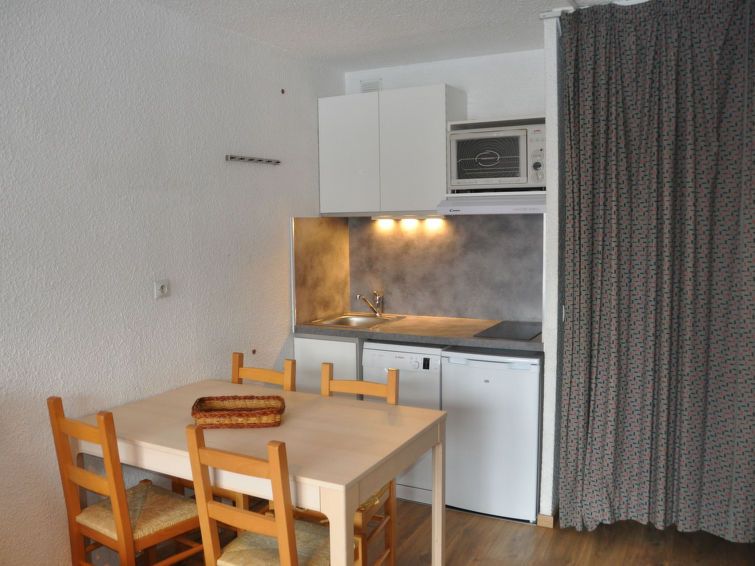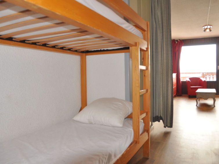 "Plein Sud A", 1-room studio 28 m2 on 1st floor. Object suitable for 4 adults. Living room with 1 sofabed and 1 x 2 bunk beds, 1 pull-out bed and TV. Open kitchen (2 hot plates, dishwasher, microwave, freezer). Bath/WC. Balcony. View of the mountains. Please note: non-smokers only.