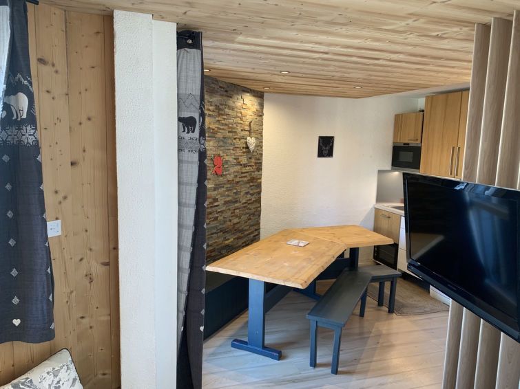 "Seracs", 3-room apartment 47 m2 on 5th floor. Object suitable for 6 adults. 1 room with 1 x 2 bunk beds, 1 double bed and TV. 1 room with 1 double bed. Living room with 1 x 2 bunk beds. Open kitchen (4 hot plates, dishwasher, toaster, microwave, freezer, electric coffee machine).