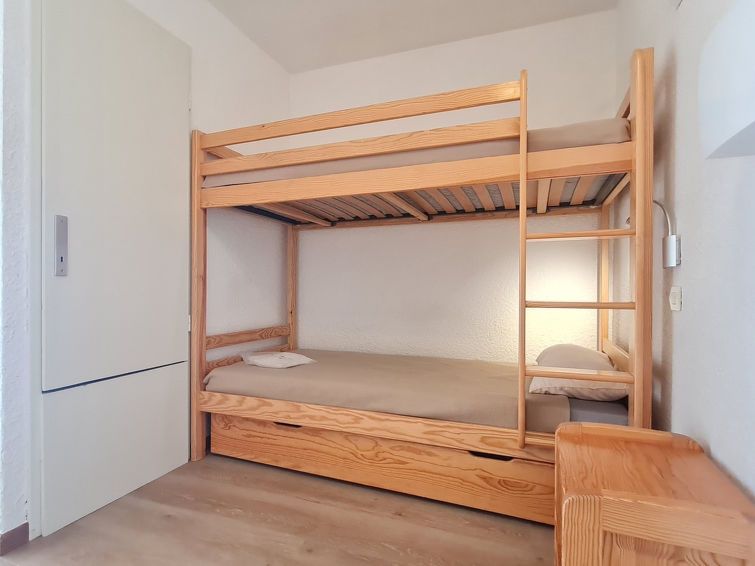 "Vallée Blanche B", 1-room studio 31 m2 on 1st floor. Object suitable for 4 adults. Living room with 1 sofabed and 1 x 2 bunk beds, 1 pull-out bed and TV. Kitchen (oven, dishwasher, 2 ceramic glass hob hotplates, microwave, electric coffee machine). Bath/WC. Balcony. View of the mountains.