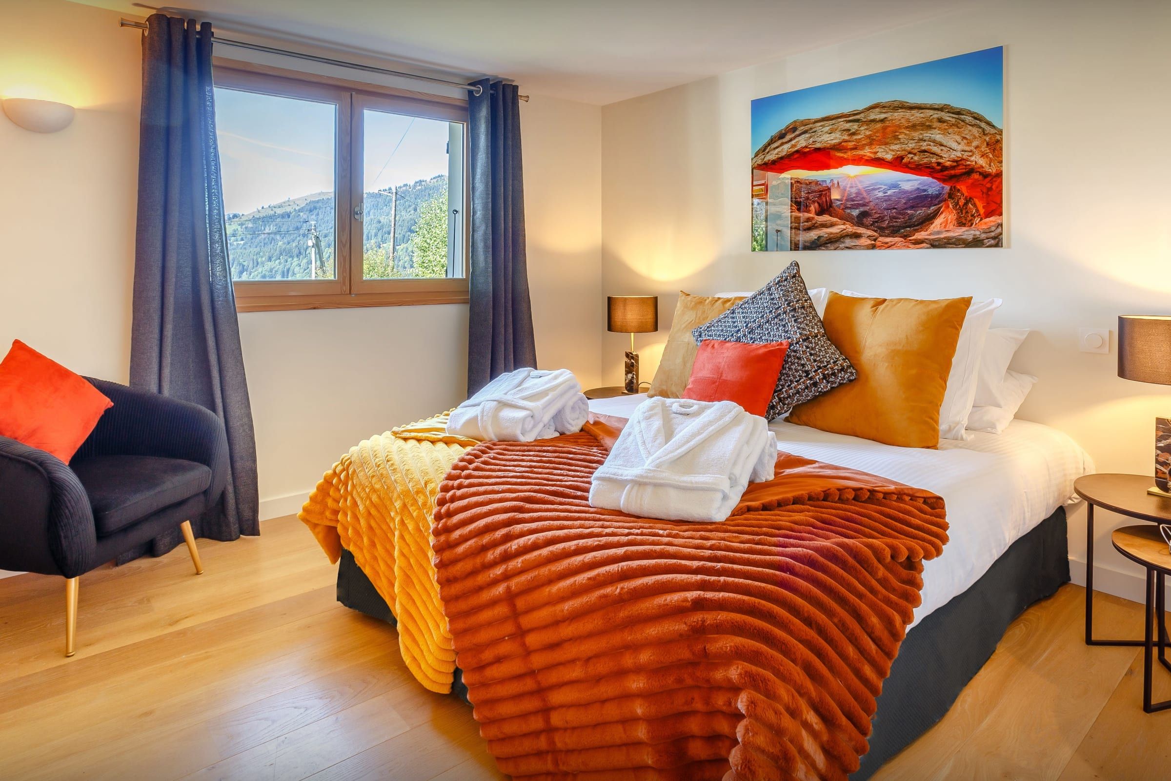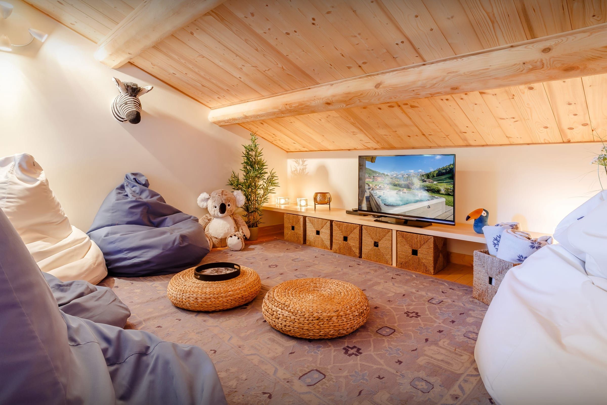 You’ll never have a dull moment at this chalet – enjoy a game of badminton, pétanque or croquet on the lawn. You’ll also find a terrace and a hot tub outdoors. Inside, the kids will love the mezzanine with its TV and games room and small multi-sports table, too. And after a busy day, there’s a sauna to unwind in or settle in front of the log fire. For skiers, the ski resort of Les Gets is 1 kilometre away and the ski bus stops just 40 metres from this home, so you don’t need a car.