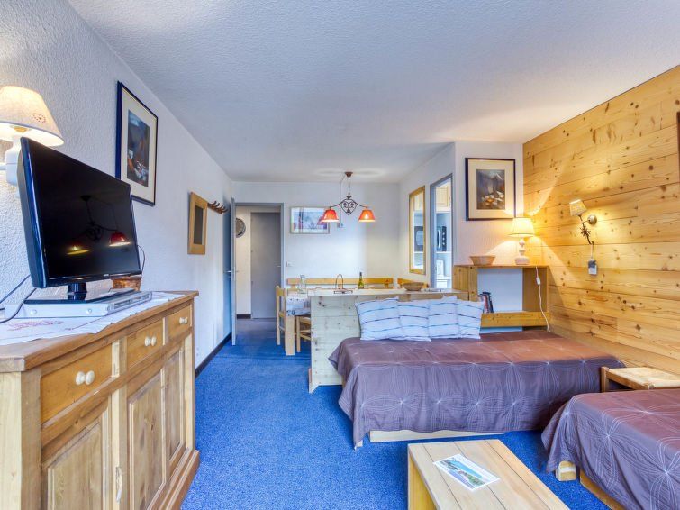 "Chanteneige 505", 2-room apartment 45 m2 on 5th floor. Spacious, very comfortable and beautiful furnishings: large living/dining room with 1 bed (90 cm, length 190 cm), 1 pull-out bed (2 pers. 2 x 90 cm, length 190 cm), TV (flat screen), DVD. 1 room with 2 beds (90 cm, length 190 cm).