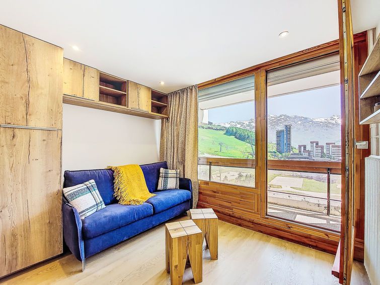 "Chavière 716", 1-room apartment 24 m2 on 7th floor, south facing position. Fully renovated in 2022, beautiful and modern furnishings: living/dining room with 1 double sofabed (140 cm, length 190 cm), TV (flat screen). Exit to the balcony. Sleeping alcove with 1 x 2 bunk beds (80 cm, length 190 cm).