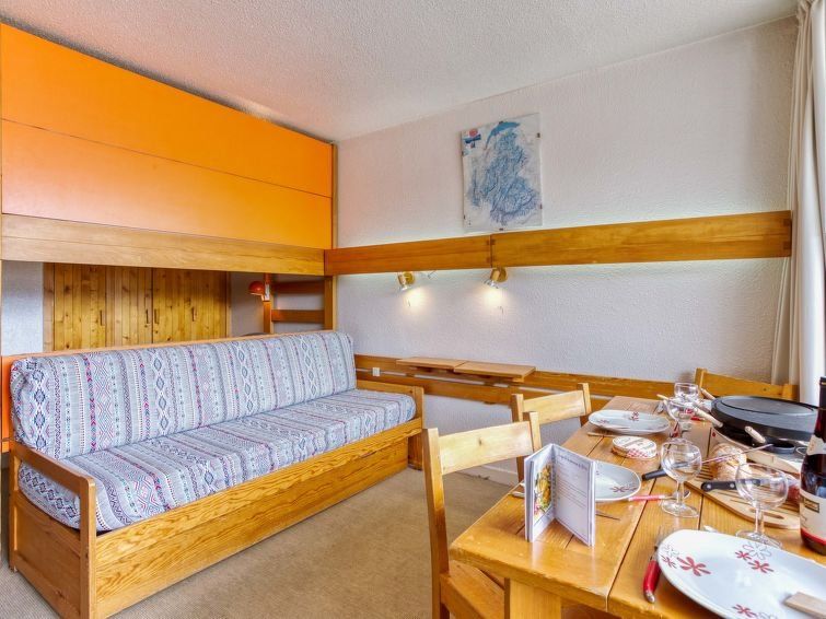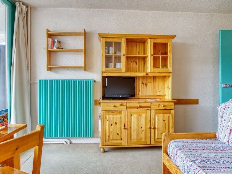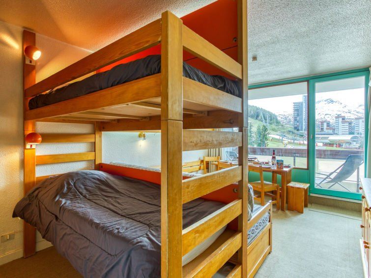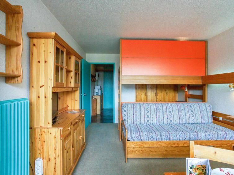 "Chavière 116", 1-room studio 24 m2 on 1st floor, south facing position. Living/dining room with 1 pull-out bed (2 pers. 2 x 80 cm, length 190 cm), TV (flat screen). Exit to the balcony, south facing position. Alcove with 1 x 2 bunk beds (80 cm, length 190 cm). Kitchenette (2 hot plates, oven, dishwasher, toaster, kettle, microwave, electric coffee machine).