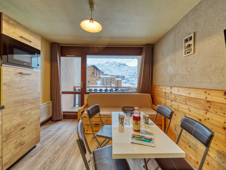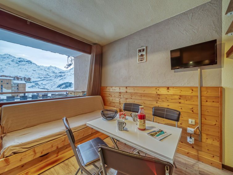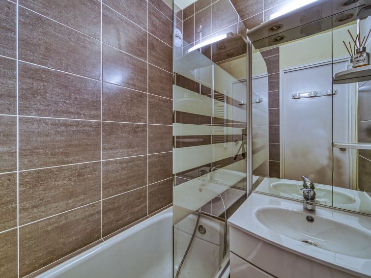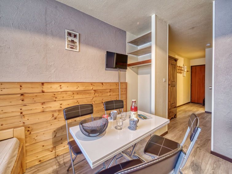 "Argousier 134 B", 2-room apartment 26 m2 on 4th floor. Beautiful furnishings: living/dining room with 1 pull-out bed (2 pers. 2 x 80 cm, length 190 cm), TV (flat screen). 1 small room with 1 x 2 bunk beds (80 cm, length 190 cm). Kitchenette (2 hot plates, oven, kettle, microwave, electric coffee machine).