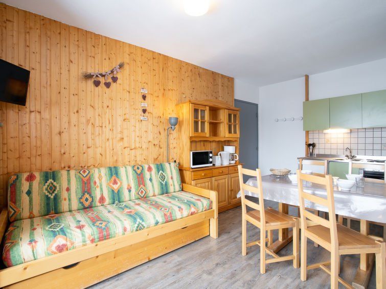"Jettay Bruant 57", 2-room apartment 24 m2 on 1st floor. Beautiful furnishings: living/dining room with 1 pull-out bed (2 pers. 2 x 80 cm, length 190 cm), TV (flat screen). Exit to the balcony. 1 room with sliding door with 1 sofabed (140 cm, length 190 cm). Kitchenette (4 hot plates, oven, kettle, microwave, electric coffee machine).