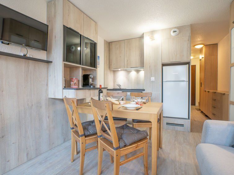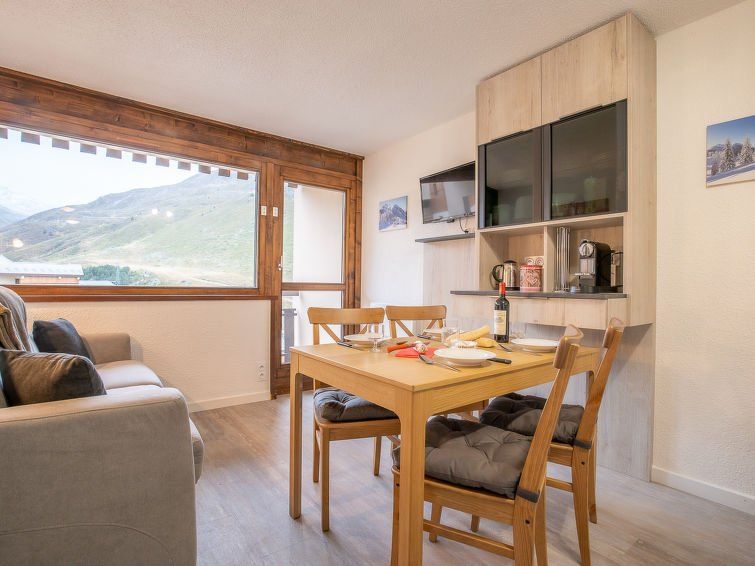 "Asters 314 Bâtiment A1", 1-room studio 24 m2 on 3rd floor, south facing position. Fully renovated in 2022, beautiful furnishings: living/dining room with 1 sofabed (140 cm, length 190 cm), TV (flat screen), electric heating and electric shutters. Exit to the balcony, south facing position.