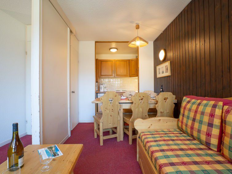 The location is great. You can ski from the apartment to several lifts and you can walk to the center of Les Munieres in 15 minutes. The parking space in the garage is also nice. You walk inside with your things to the apartment. The apartment is really too small for 6 adults. There are 3 trundle beds, so there is no full-fledged double bed. However, 2 bathrooms and kitchen with dishwasher. There are no chairs on the balcony, but it does have a nice view.