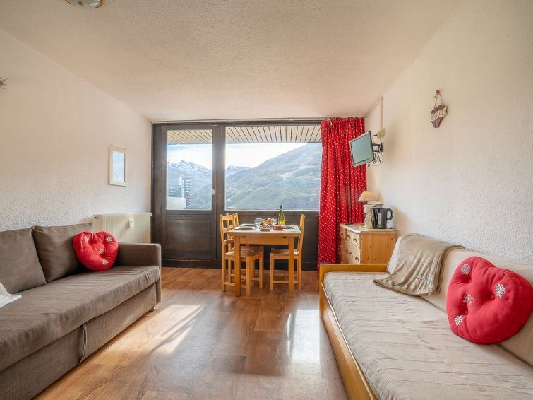 The apartment offers a great view of the central square and the surrounding mountains. The location in the ski area is ideal, but the ski cellar is difficult to reach and luggage has to be carried a long way when moving in. Unfortunately, the apartment was not cleaned this year and the heating only worked to a limited extent. The mattresses and bedding urgently need to be replaced.