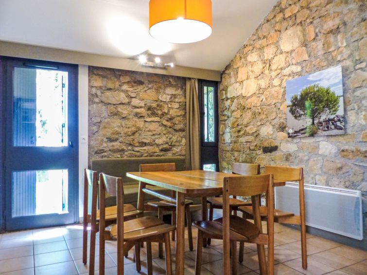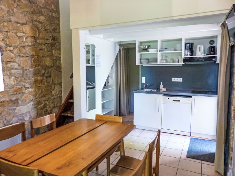 "Les Vans-Cottage 3 pièces 4 personnes", 3-room terraced house 41 m2 on 2 levels. Practical and beautiful furnishings: living room with TV (flat screen). Exit to the terrace. 1 room with 1 x 2 bunk beds (80 cm, length 190 cm). Kitchenette (dishwasher, 4 ceramic glass hob hotplates, toaster, microwave, freezer, electric coffee machine).