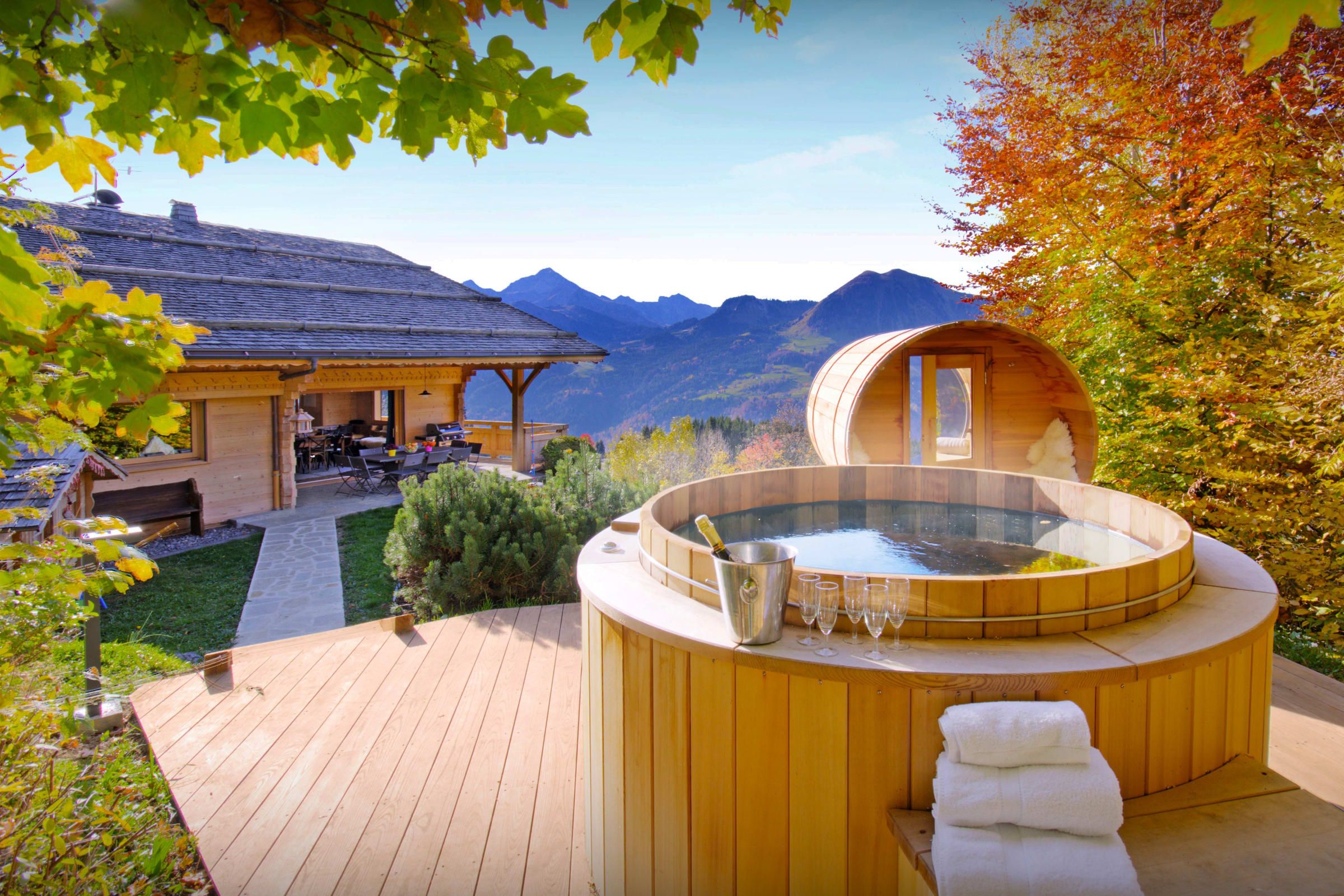 A skiing escape with all the comforts you could ask for – what could be better? This chalet is located in the French Alps, 3 kilometres from the slopes of La Croix Fry and close to the charming village of Manigold. The ski bus departs from just 50 metres away. The chalet boasts panoramic views across the Aravis mountains and the Manigod valley, which can be admired from the covered terrace, the balcony, and the hot tub and sauna. Inside, there’s a home cinema room and a cosy fireplace.
