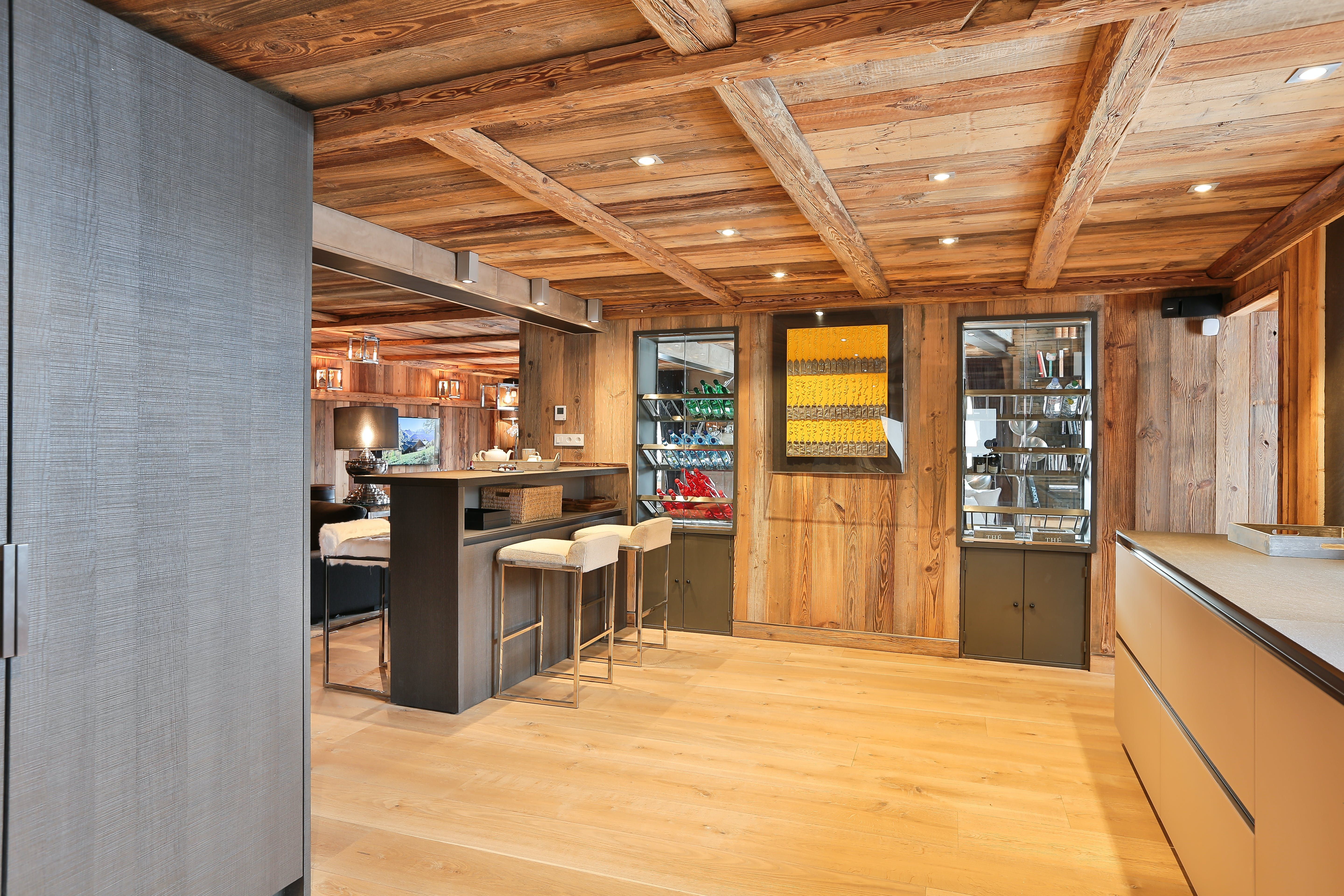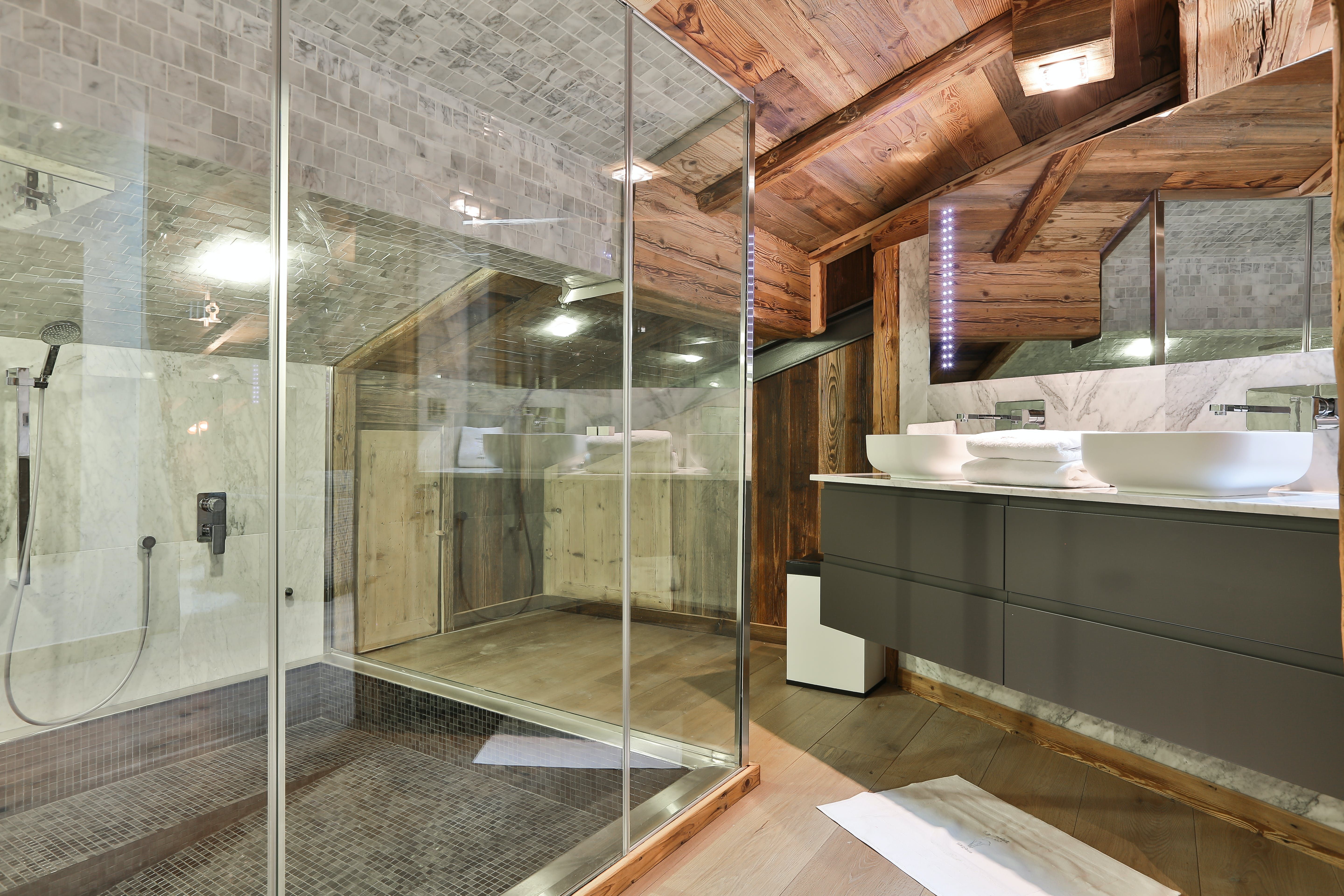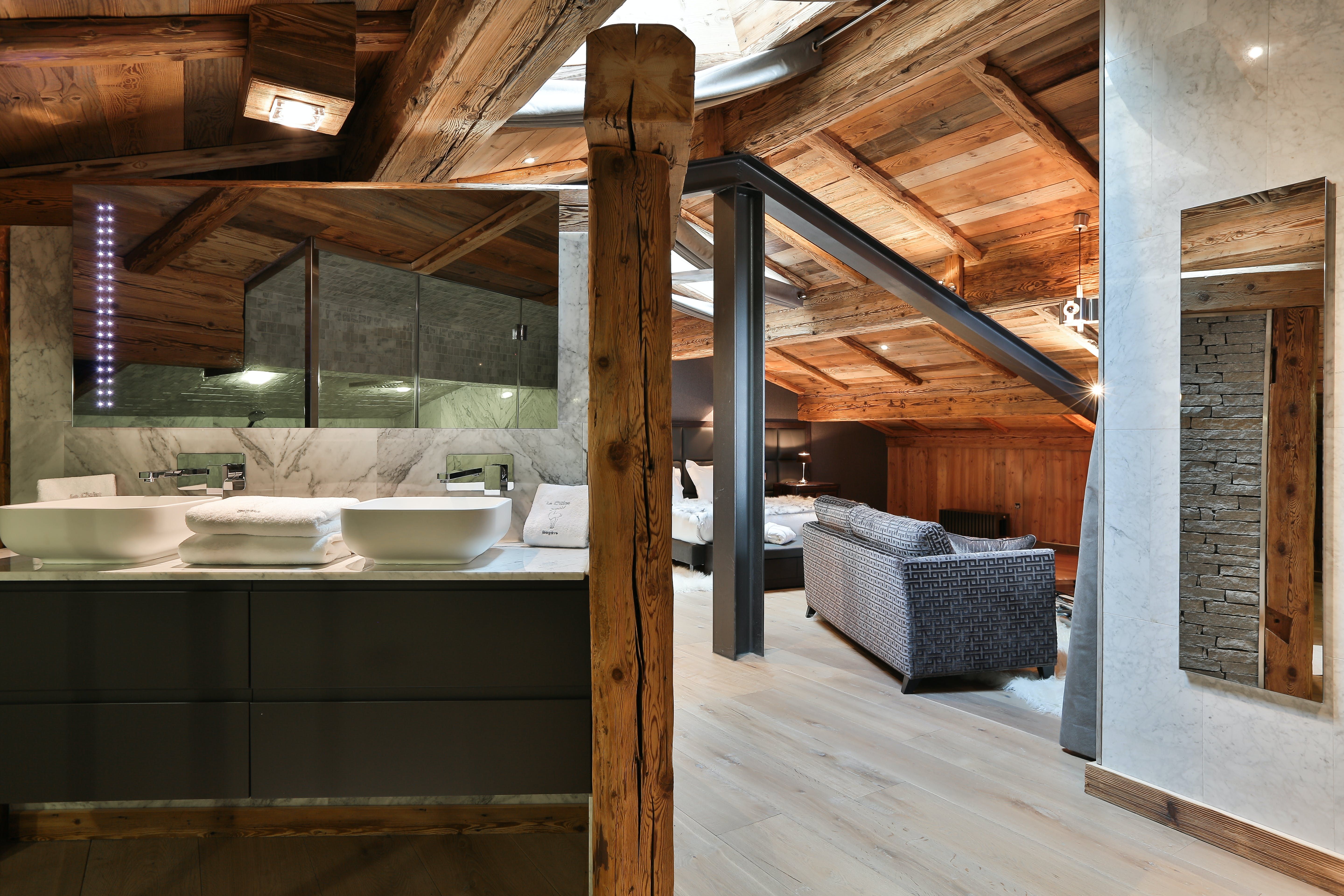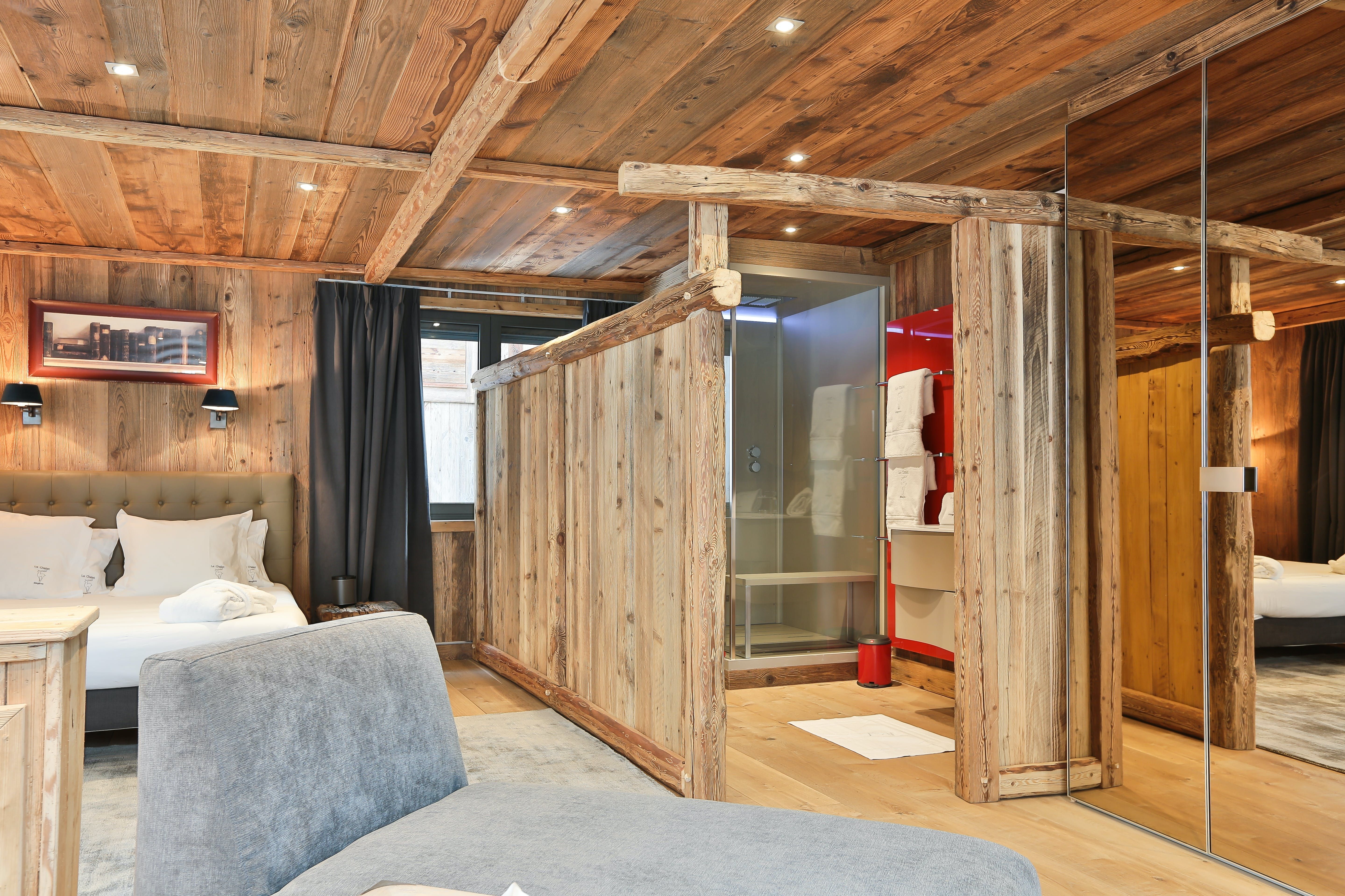 While there are aspects you'd expect to see in mountainside accommodation – plenty of wood, faux fur and roaring fires – there are a few others that will come as a pleasant surprise. Take the ground floor, for instance. Here you'll find a large swimming pool with a wave system, plus an adjoining fitness room. If that sounds a little too taxing, guests have the option of taking a seat in the two-person sauna or reclining in the outdoor Jacuzzi instead.