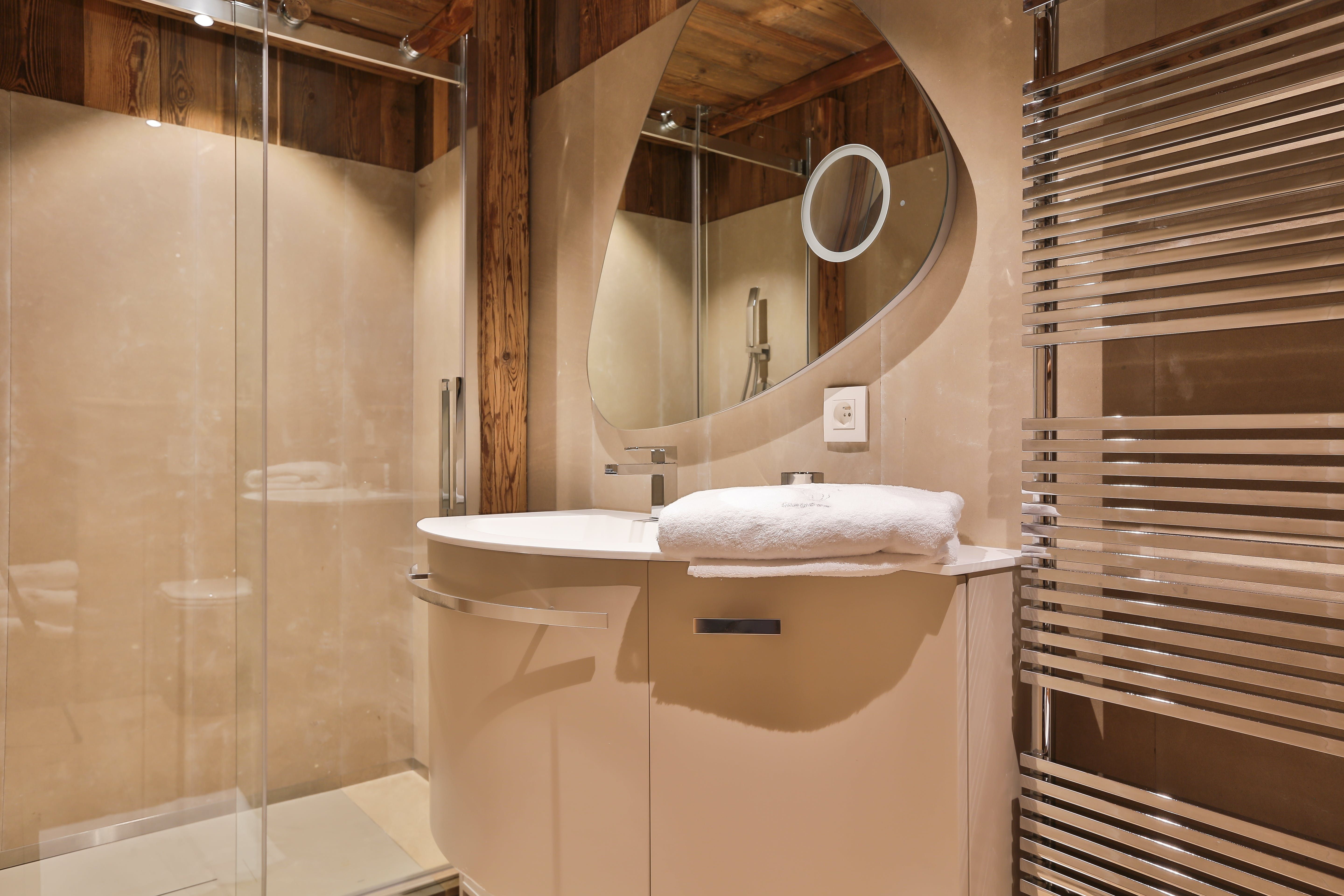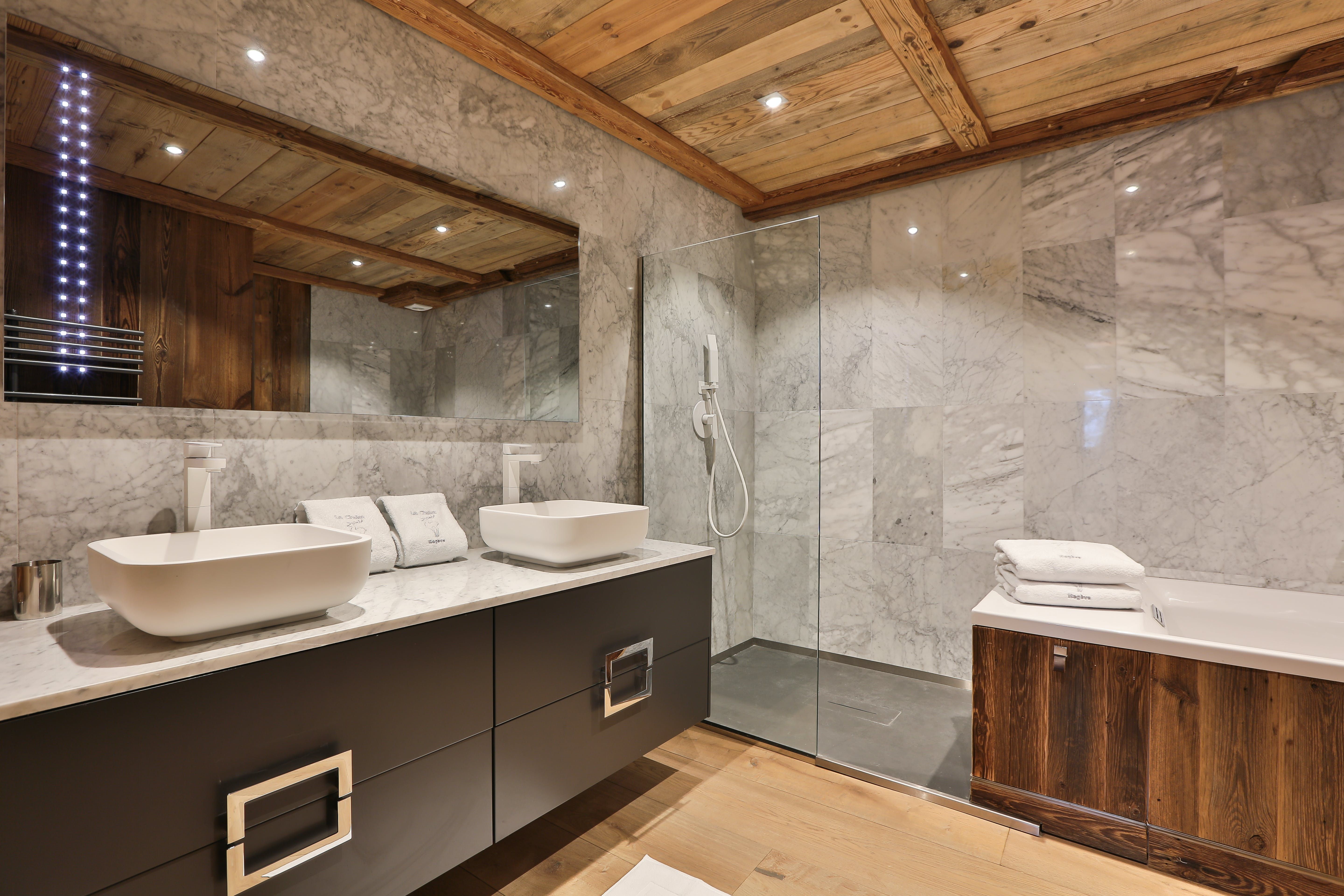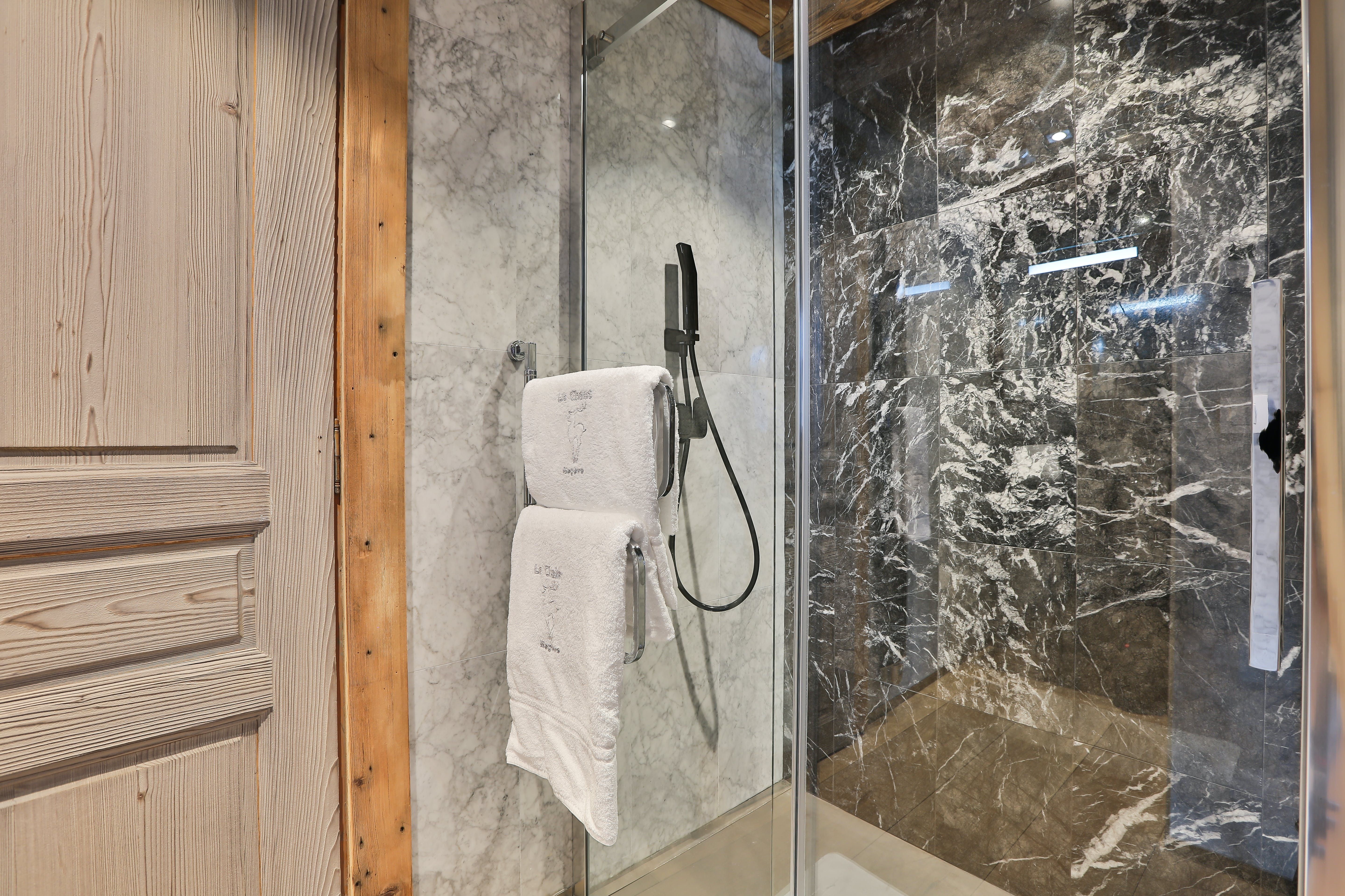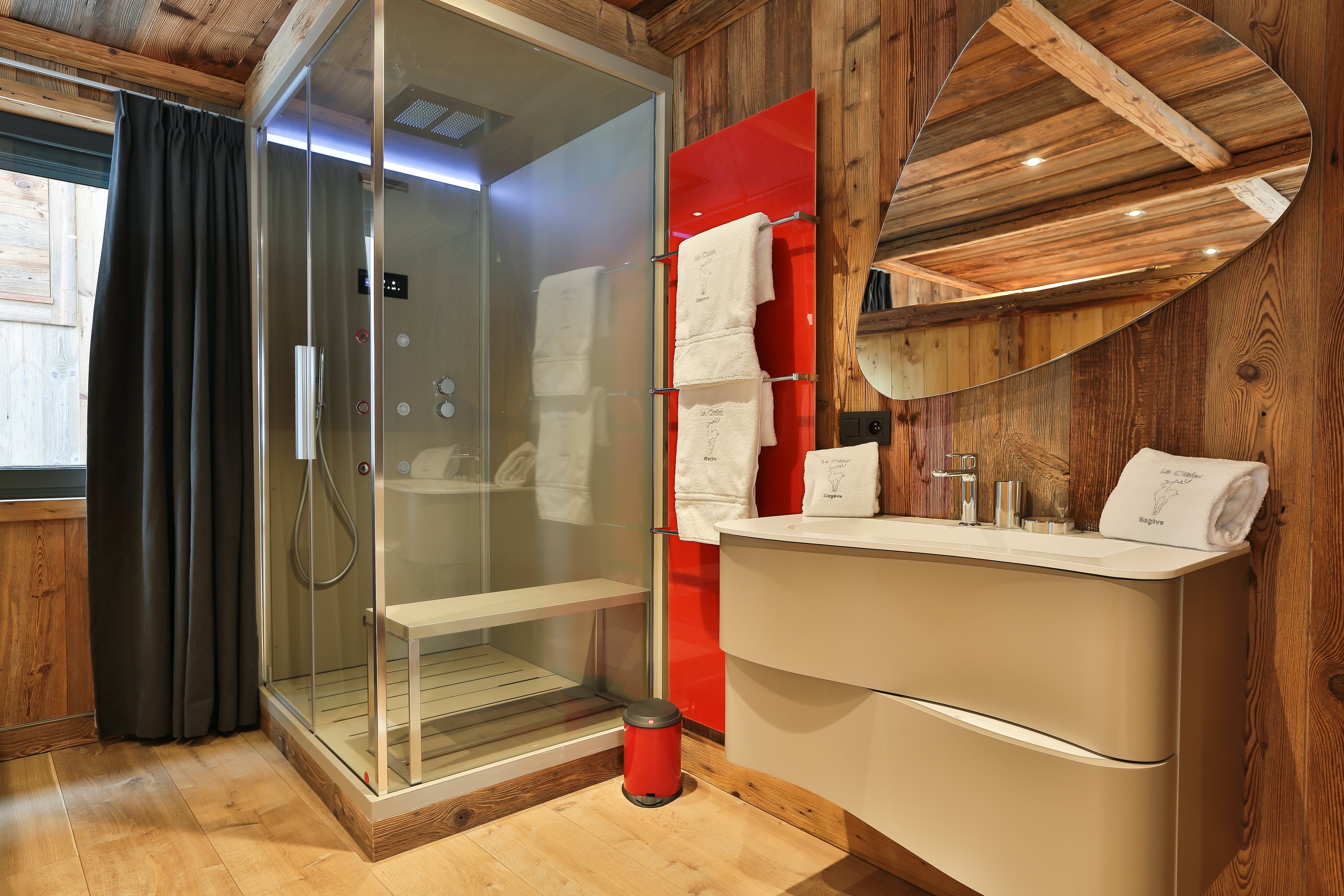 While there are aspects you'd expect to see in mountainside accommodation – plenty of wood, faux fur and roaring fires – there are a few others that will come as a pleasant surprise. Take the ground floor, for instance. Here you'll find a large swimming pool with a wave system, plus an adjoining fitness room. If that sounds a little too taxing, guests have the option of taking a seat in the two-person sauna or reclining in the outdoor Jacuzzi instead.