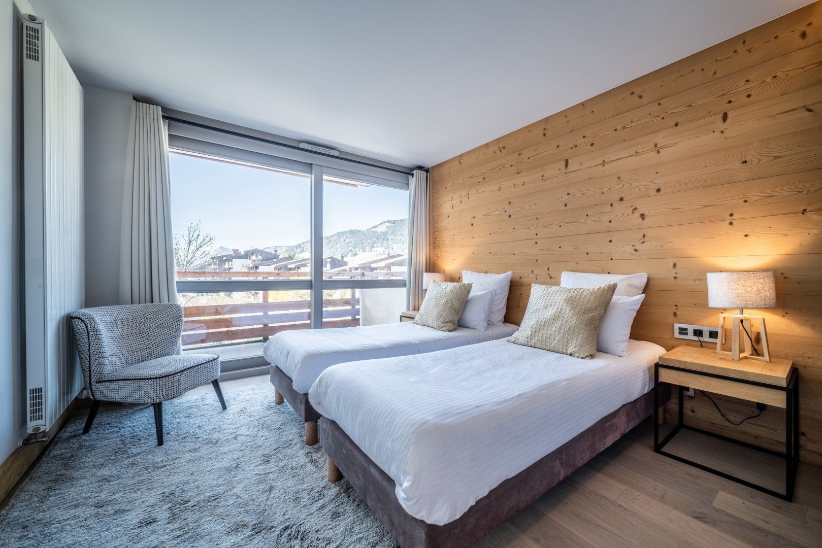Returning to the chalet after days spent in the great outdoors will feel like a warm hug as snuggly blankets, and soft home furnishings create a cosy set-up that makes relaxing here so easy. The large open space living area presents a sociable setting that encourages the group to come together for game nights and homemade meals. Why not serve up some French wine and local cheeses picked up from one of the independent shops in Megève, just a fifteen-minute walk away?