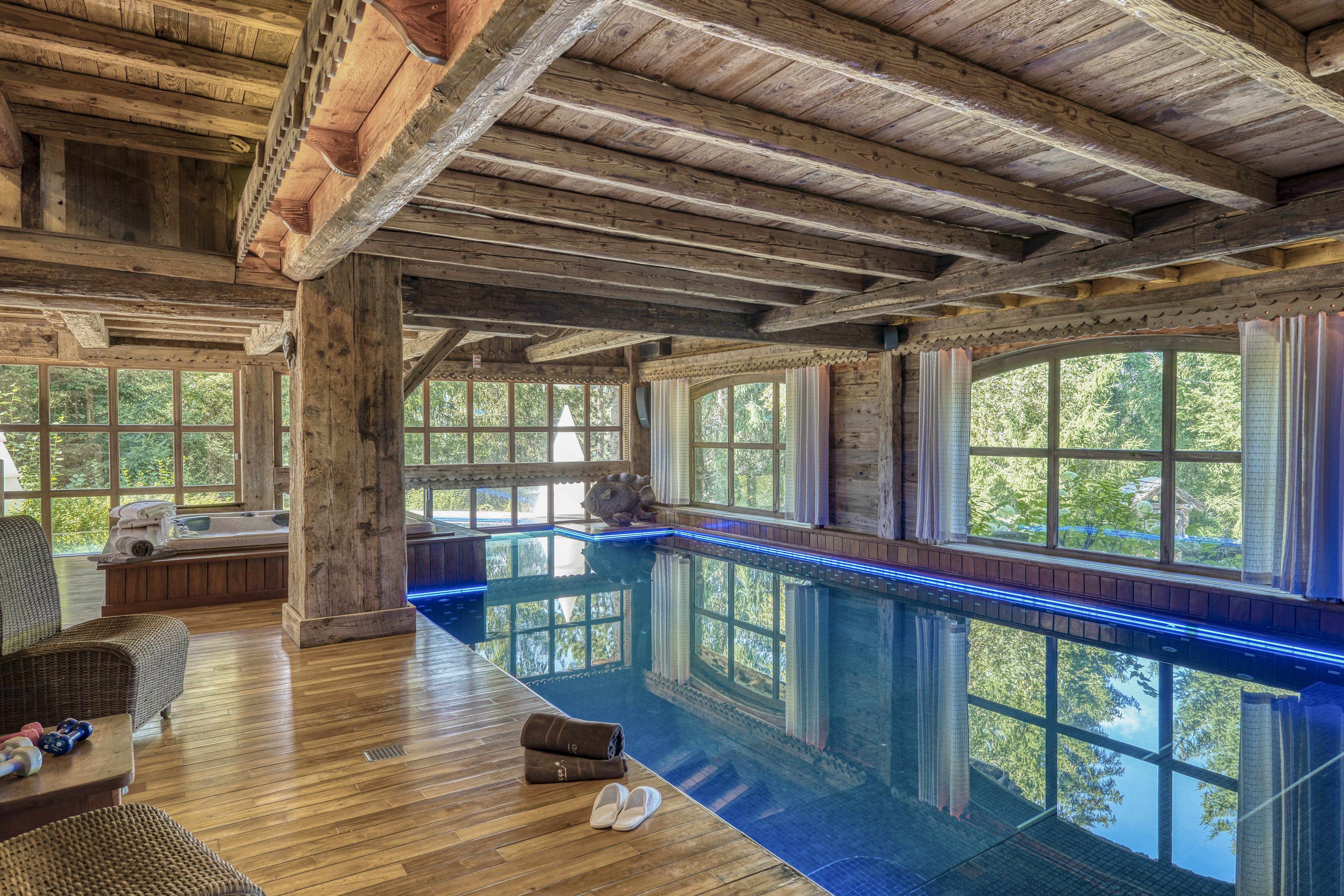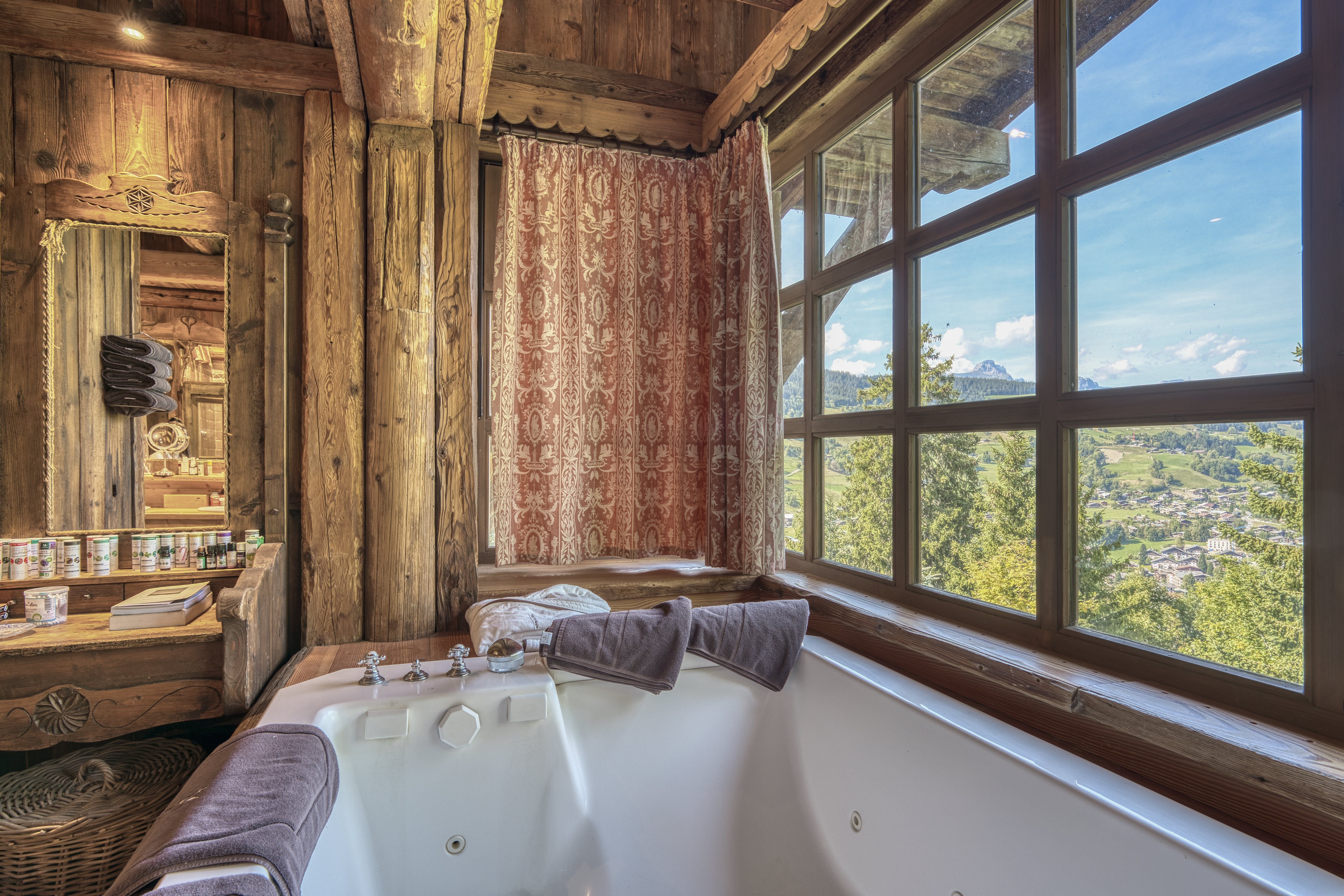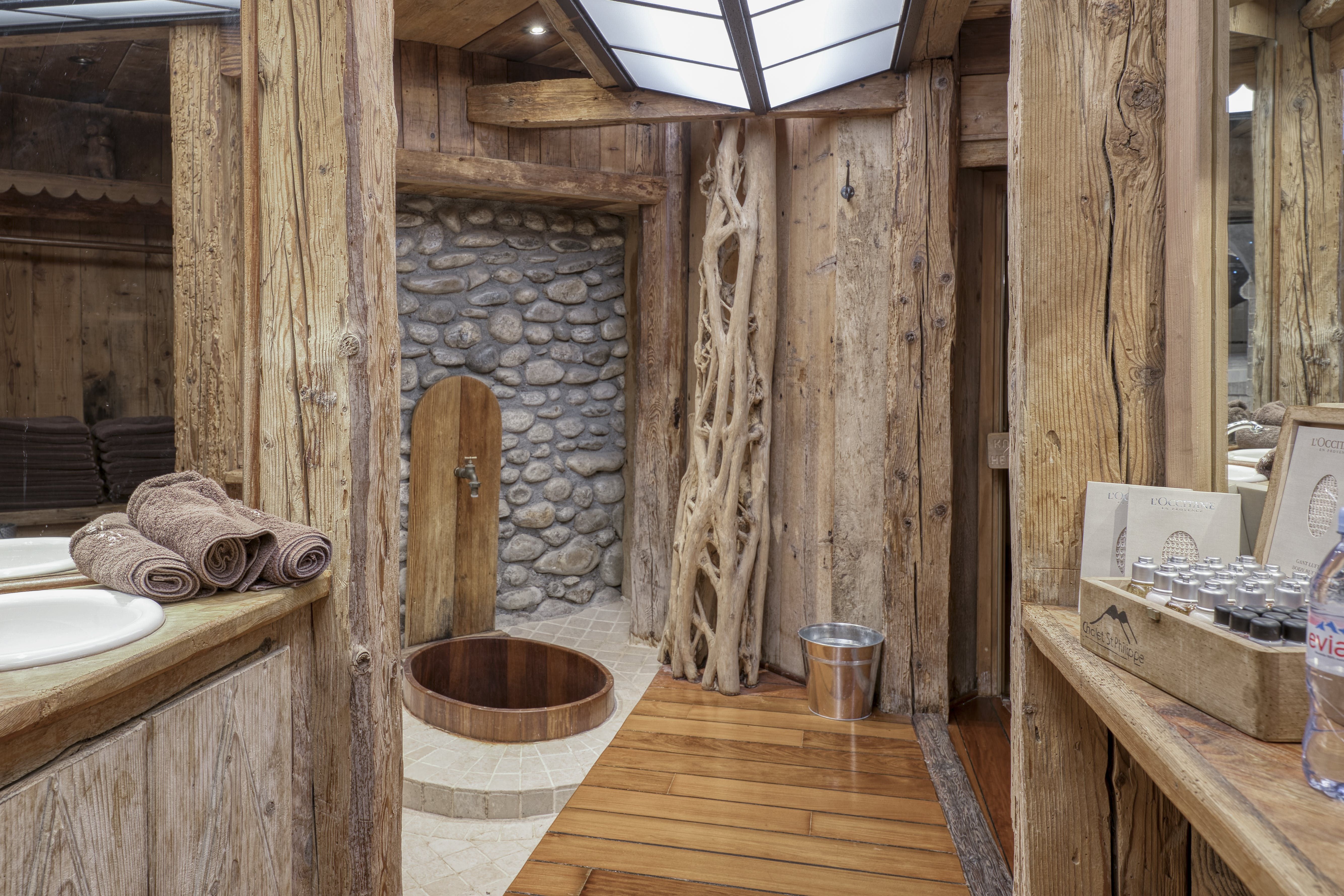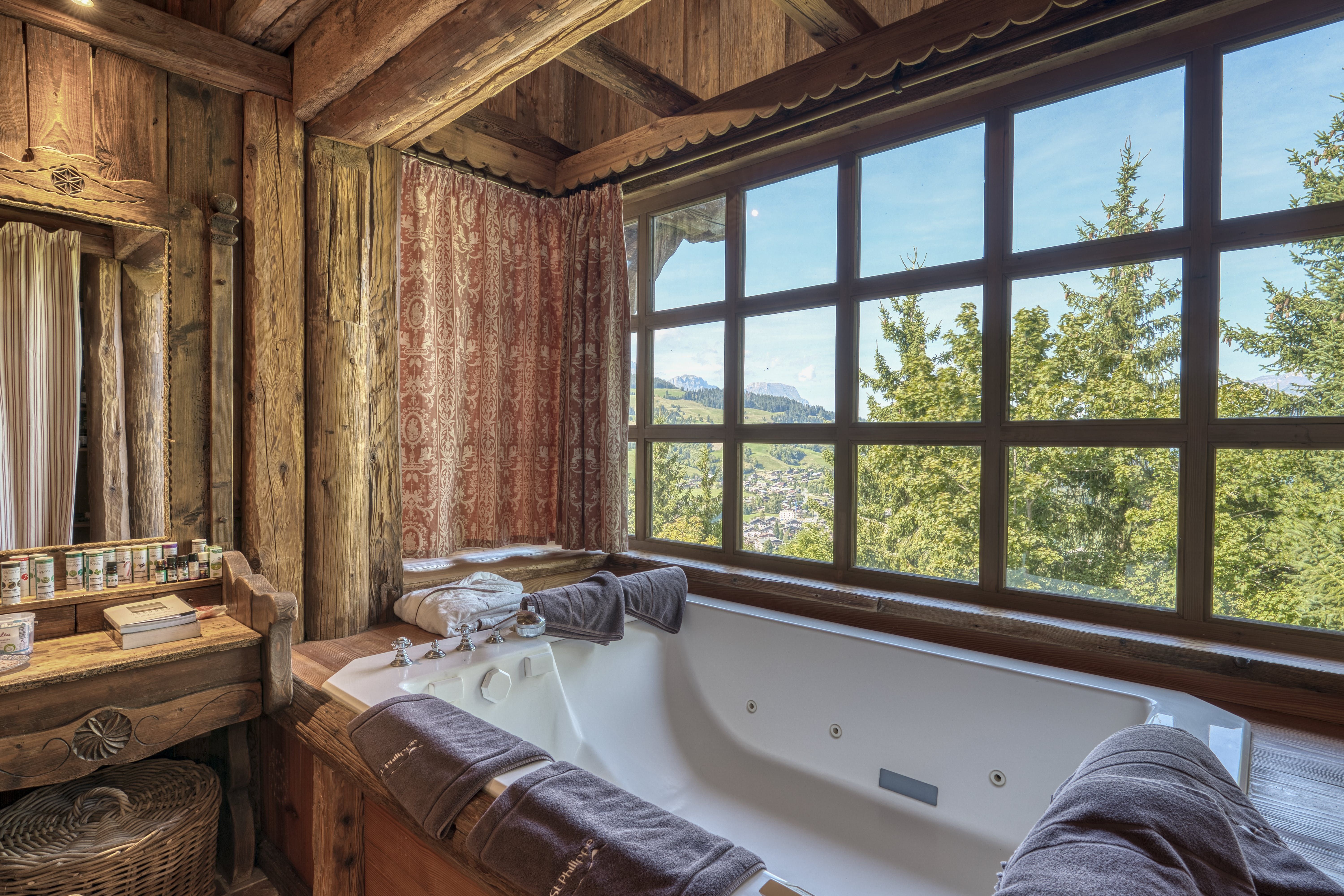 This one’s for the hedonists, the lovers of life. It’s a ten-minute walk from the centre of Megève and its position on a hillside, near Chemin du Calvaire, means in season you have ski-in, ski-out access. A stay here is like having your own luxury hotel and clubhouse all in one. It’s ideal for corporate getaways, with a seminar room and team-building activities galore – archery in the garden, a boules court and even a full climbing wall.