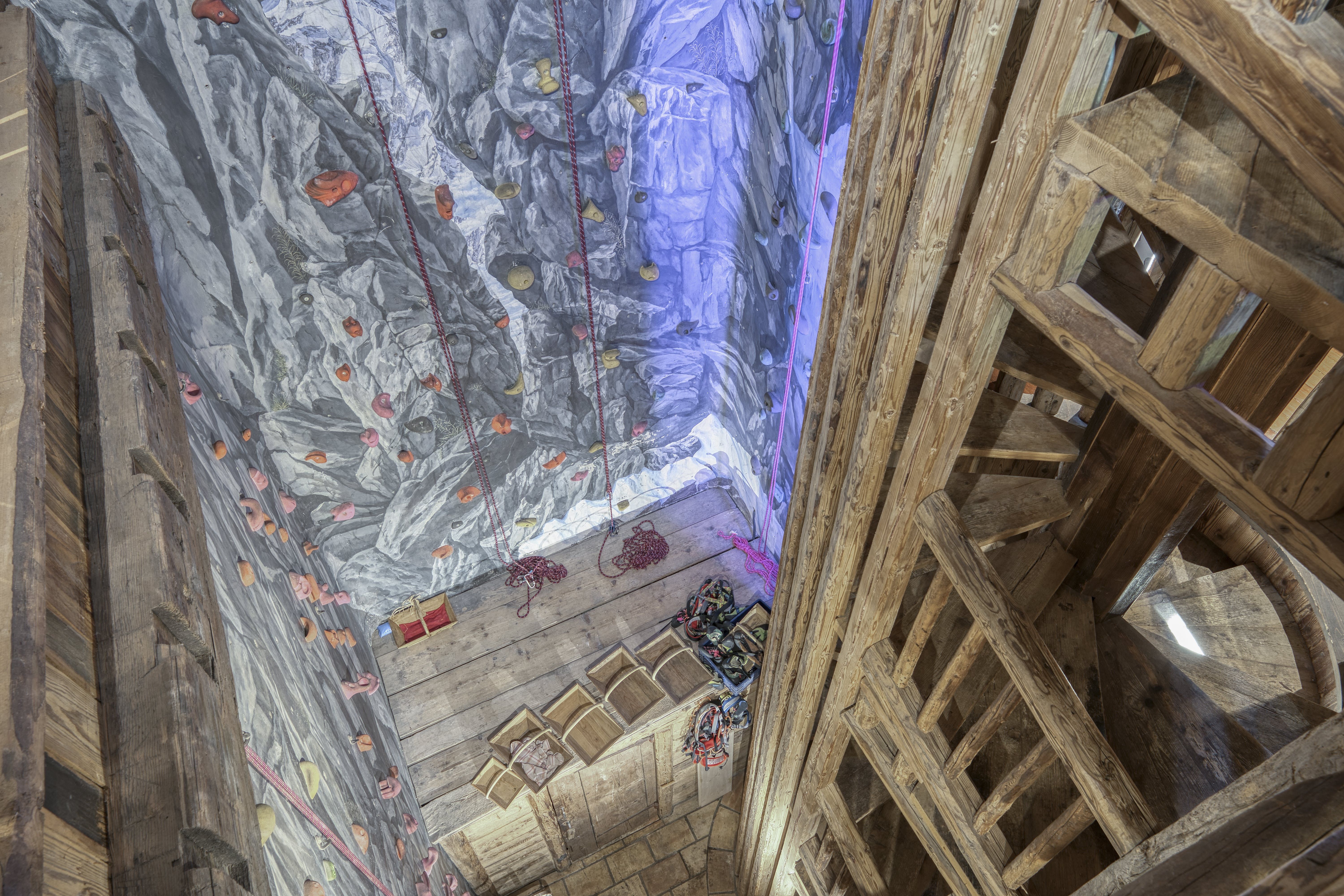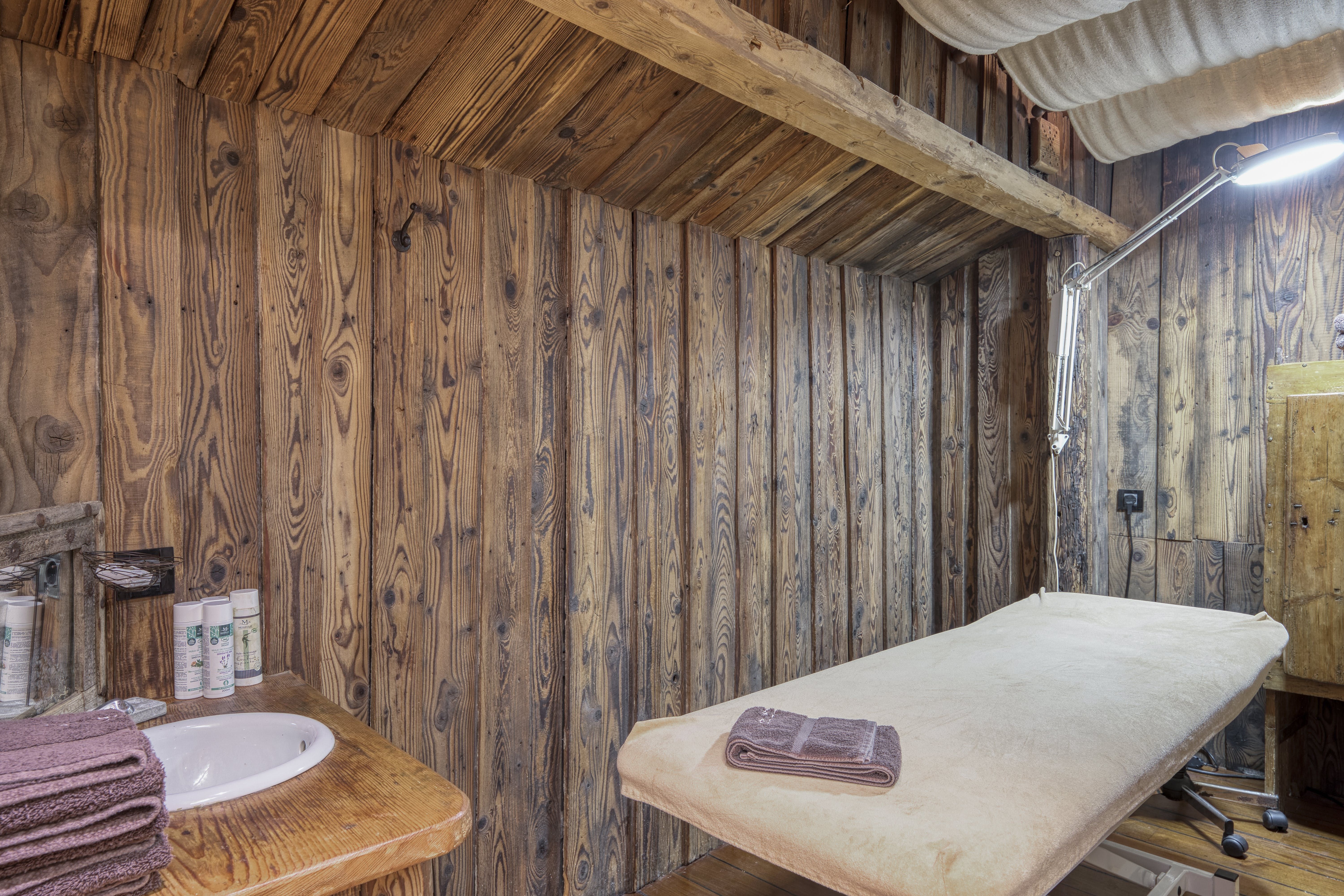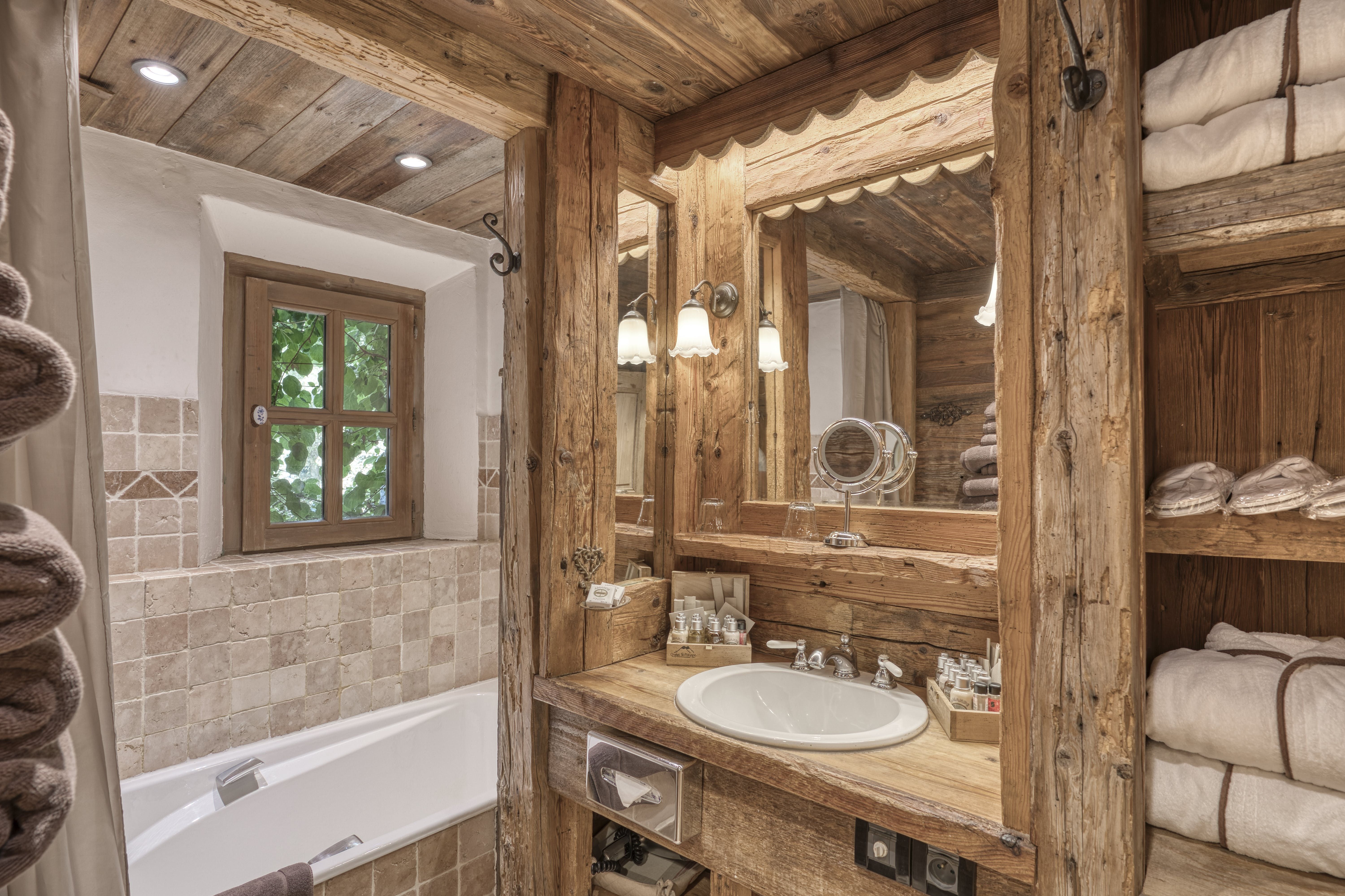 Finally, there are the bedrooms. Each one is like a fairytale come to life with wood-carved beds and pine-clad walls. Even the ensuites feel as though they’ve been carved out of Alpine wood by hand.
