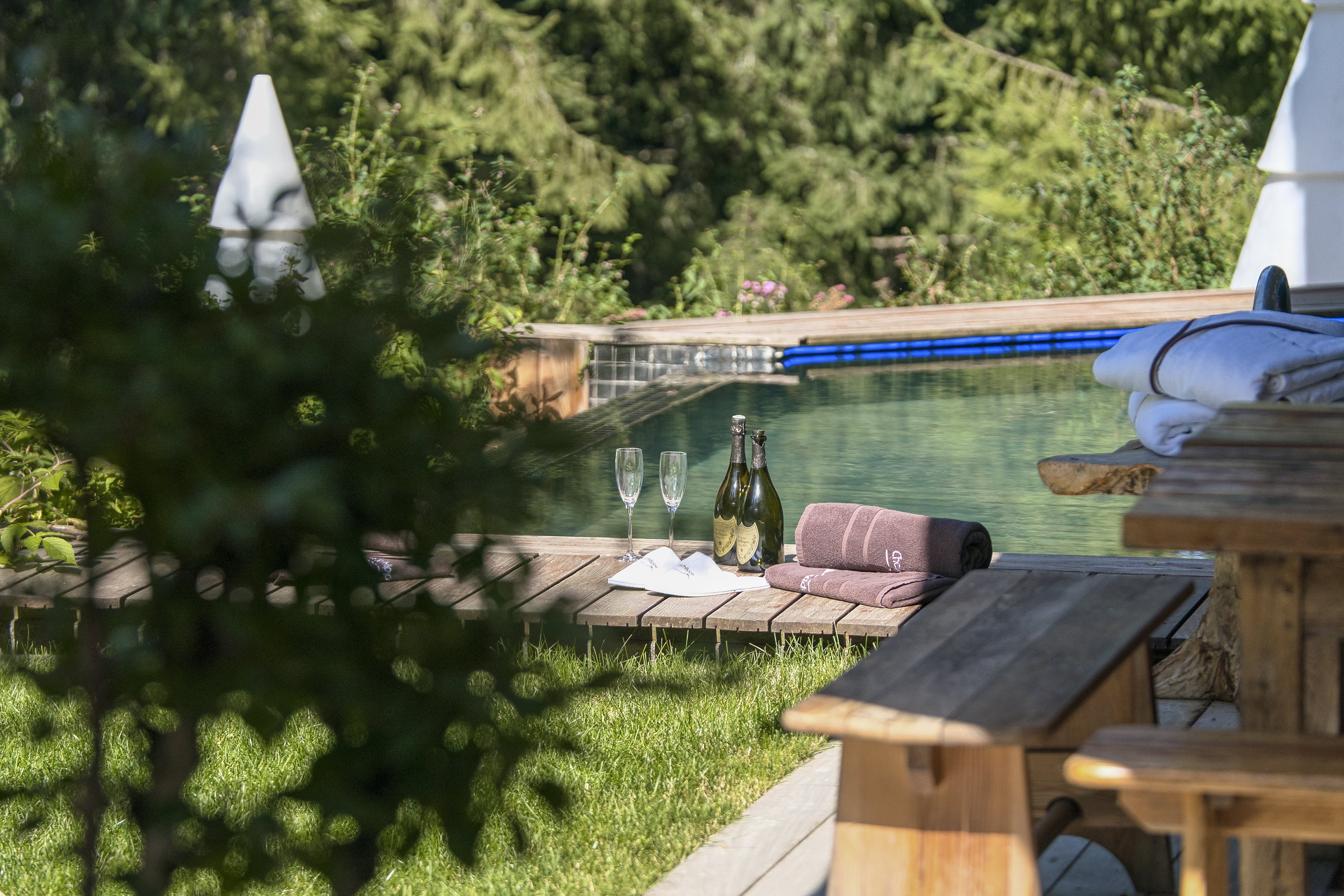 Like any 5-star hotel, you’ve got a spa and swimming pool all to yourself. The indoor pool with its wave machine and hot waterfall is perfect for winter as snow tumbles outside and days on the slopes can be remedied with sessions in the Turkish hammam, sauna and massage room. In summer, the outdoor pool surrounded by pines is perfect for a cooling dip and there’s banquet-sized dining for the group beneath double gazebos. Each outdoor terrace and balcony feels secluded by towering trees and the alpine garden with its rockeries is a delight to explore.
