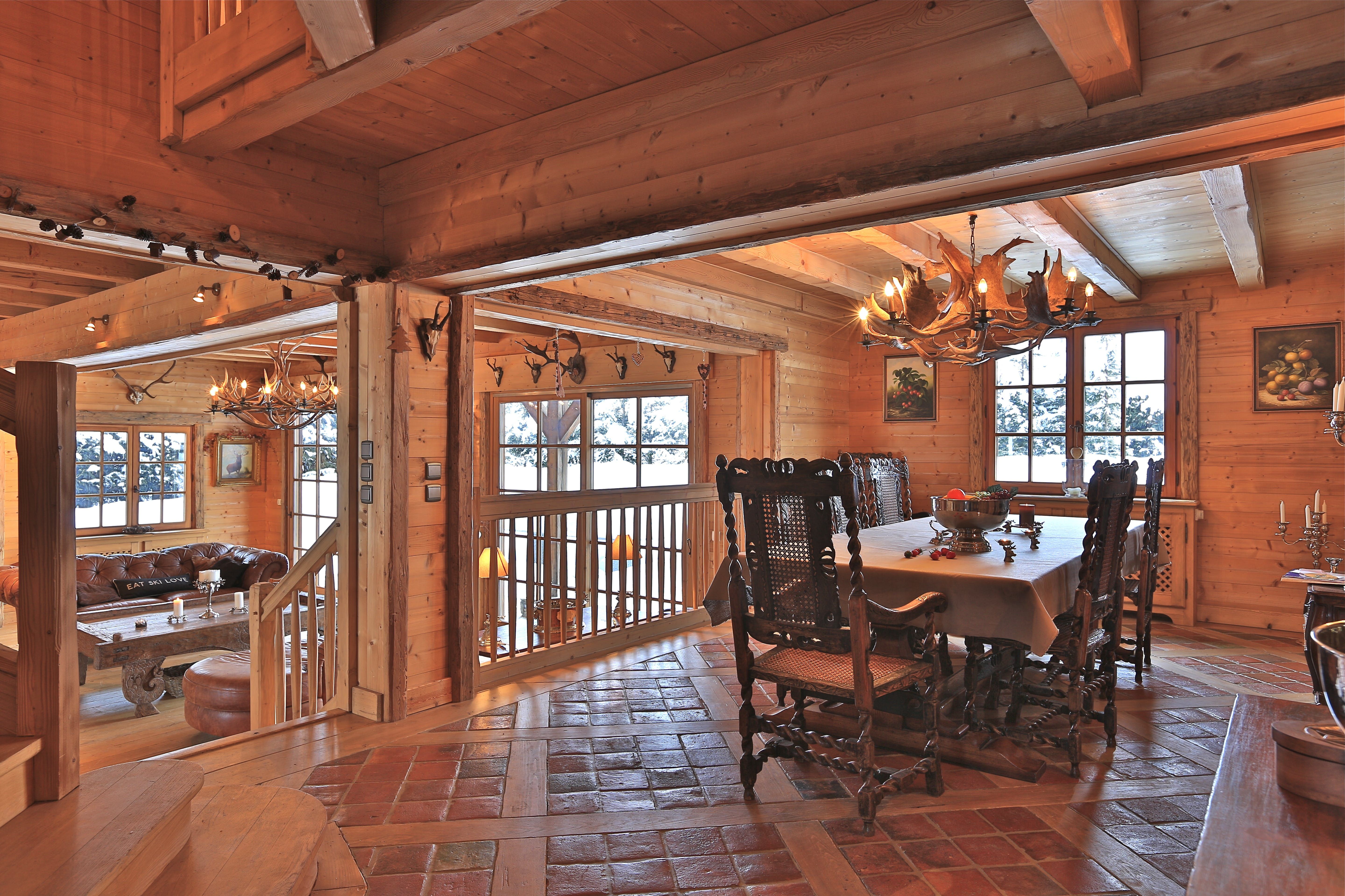 Let this large retreat welcome you in with its warm fireplace and time-honoured design. Wake up beneath wood beams and enjoy panoramic views over the Mont d'Arbois plateau from your wraparound balcony. After a day of adventure, unwind in your own sauna, then hire a private chef to cook tartiflette for your whole family. We think you'll adore dining here – sit with your loved ones on ornately carved chairs, amid classical paintings, and toast a happy holiday with a glass of local wine. As for nightly entertainment, you'll have a DVD player and Dolby Digital hi-fi.