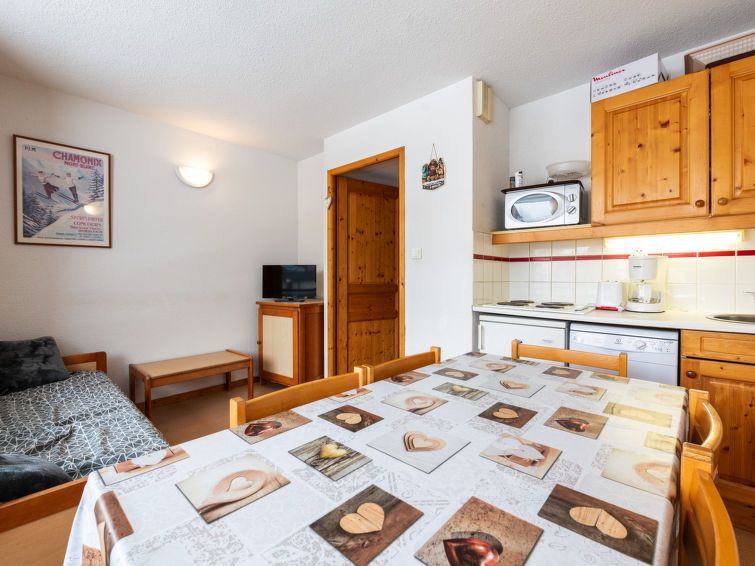 "Les Eterlous", 2-room apartment 25 m2 on 2nd floor. Object suitable for 4 adults. 1 room with 1 double bed. Living room with 1 bed and 1 x 2 bunk beds. Open kitchen (4 hot plates, dishwasher, microwave, electric coffee machine). Bath/WC. Balcony. View of the mountains, the ski run and the swimming pool.