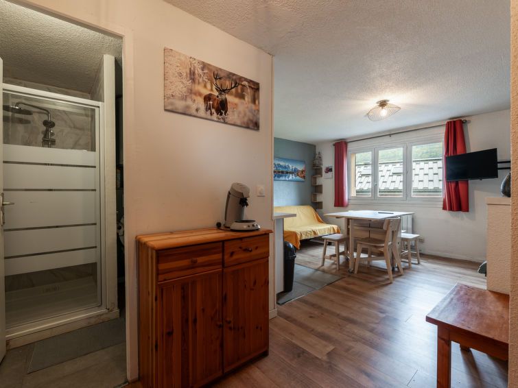 "Les Narcisses", 1-room studio 24 m2 on 1st floor. Object suitable for 4 adults. Living room with 2 sofabeds, 2 pull-out beds and TV. Open kitchen (2 hot plates, toaster, kettle, microwave, electric coffee machine). Shower/WC. View of the mountains. Please note: non-smokers only. Offer by a commercial proprietor according to Art.