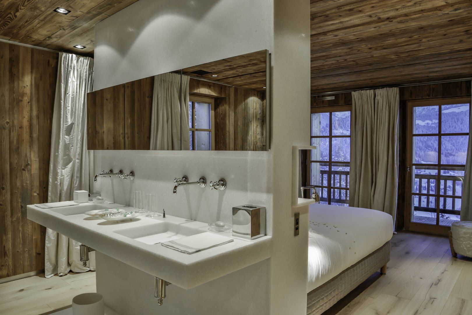 Sitting in the heart of a meadow with mesmerising views across the Alps, every detail of this home sings with the abundant beauty of its surroundings.