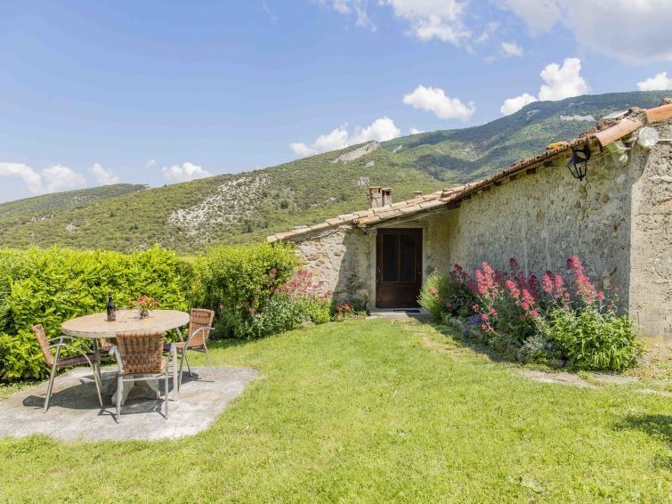 "Le Cèdre", 2-room house 70 m2. Practical and rustic furnishings: living/sleeping room with 1 double sofabed (140 cm, length 190 cm), open-hearth fireplace, dining table and TV. 1 room with 1 french bed (140 cm, length 190 cm). Small, open kitchen (oven, 4 gas rings, toaster, kettle, microwave, freezer, electric coffee machine).