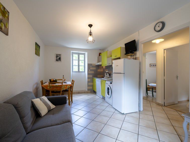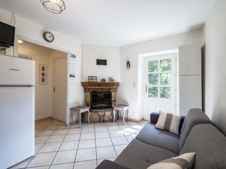 "Le Moulin", 3-room house 50 m2, on the upper ground floor. Object suitable for 2 adults + 3 children. Bright, cosy furnishings: living/dining room with open-hearth fireplace (only for decoration), dining table, satellite TV and fan. 1 room with 1 bed (90 cm, length 190 cm), 1 french bed (160 cm, length 200 cm).