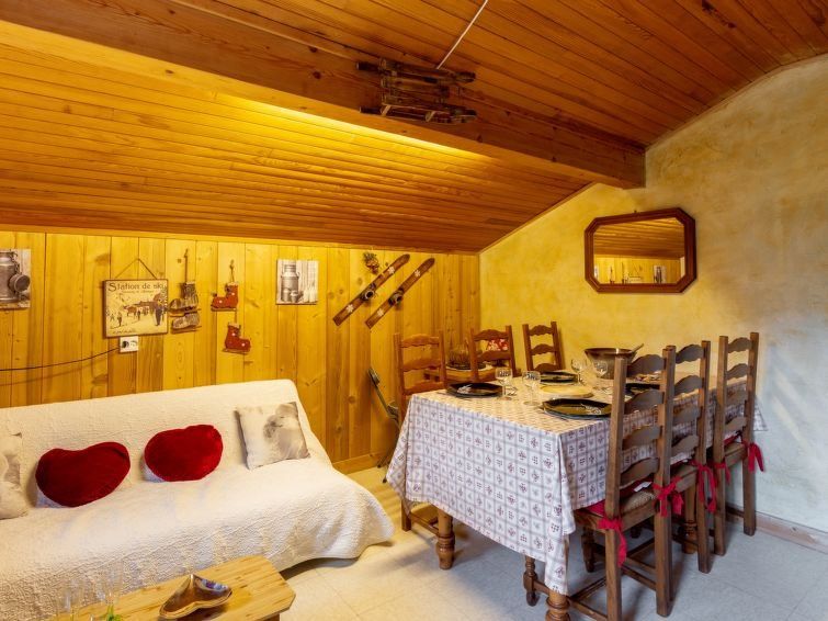 "A la Claire Fontaine 2", 2-room apartment 30 m2 on 1st floor. Living/dining room with TV and flat screen. Exit to the balcony. 1 room with 1 bed (90 cm, length 190 cm), 1 french bed (140 cm, length 190 cm). Walk-through room with sloping ceilings with 1 bed (90 cm, length 190 cm), separate WC.
