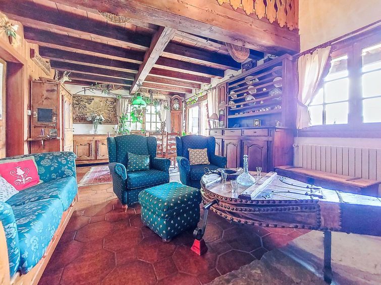 5-room apartment on 1st floor. Living/dining room with open-hearth fireplace (only for decoration), TV (flat screen). Exit to the balcony, west facing position. 1 room with 1 french bed (1 x 140 cm, length 190 cm). 1 room with 1 french bed (1 x 140 cm, length 190 cm), TV (flat screen).