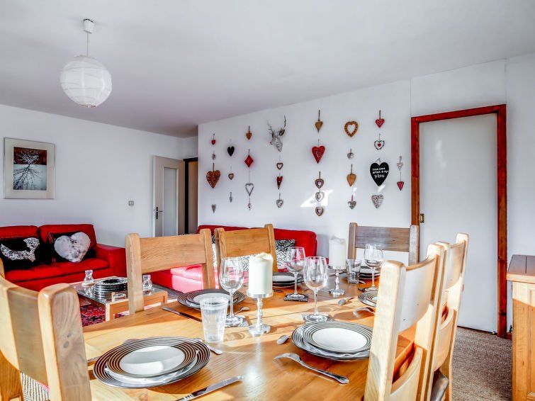 "Fleurs des Alpes", 3-room apartment 70 m2 on 4th floor. Object suitable for 2 adults + 4 children. Living/dining room with flat screen and DVD. Exit to the balcony. 1 room with 1 french bed (2 x 90 cm). 1 room with 2 x 2 bunk beds (90 cm). Kitchen (oven, dishwasher, 4 induction hot plates, toaster, kettle, electric coffee machine, combination microwave).