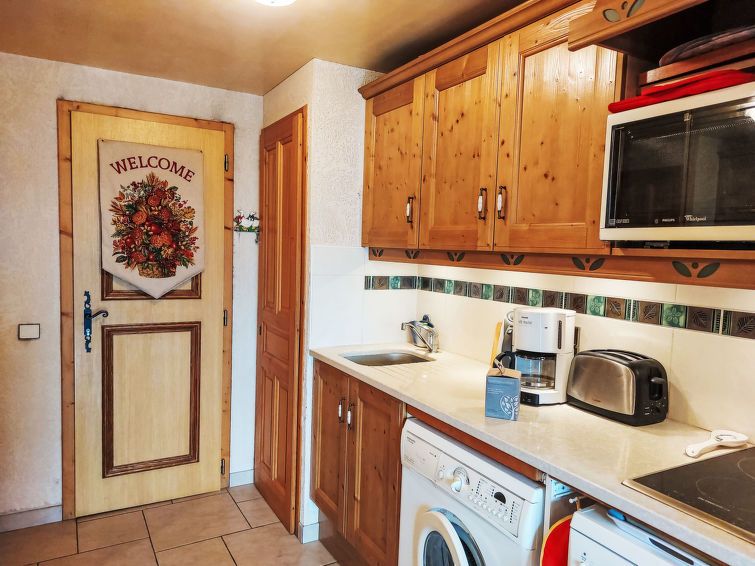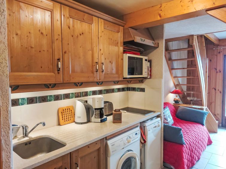 "La Coupe de Cristal", 3-room apartment 32 m2 on 2 levels on 3rd floor. Living/dining room with TV (flat screen). Exit to the balcony. Kitchenette (2 hot plates, dishwasher, toaster, kettle, electric coffee machine). Sep. WC. Upper floor: (steep stair), 1 room with sloping ceilings with 1 french bed (140 cm, length 190 cm).